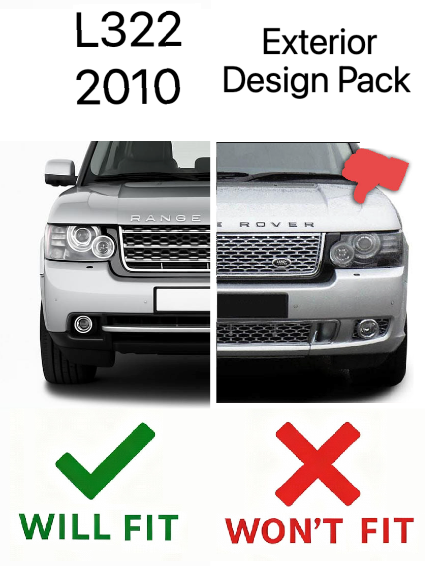This item WILL NOT fit Range Rover L332 models fitted with an Exterior Design Pack Front Bumper