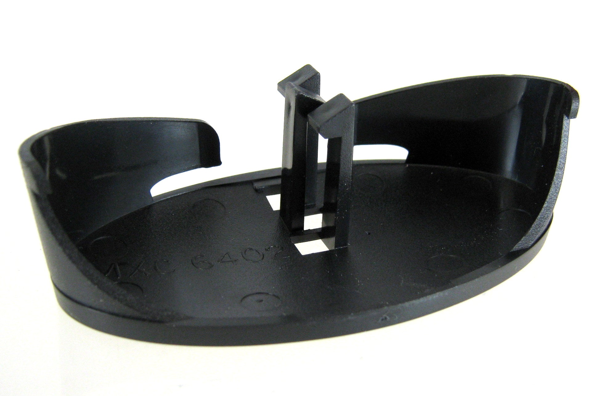 Reach behind the badge and pull the clips apart to release the old plinth assembly.