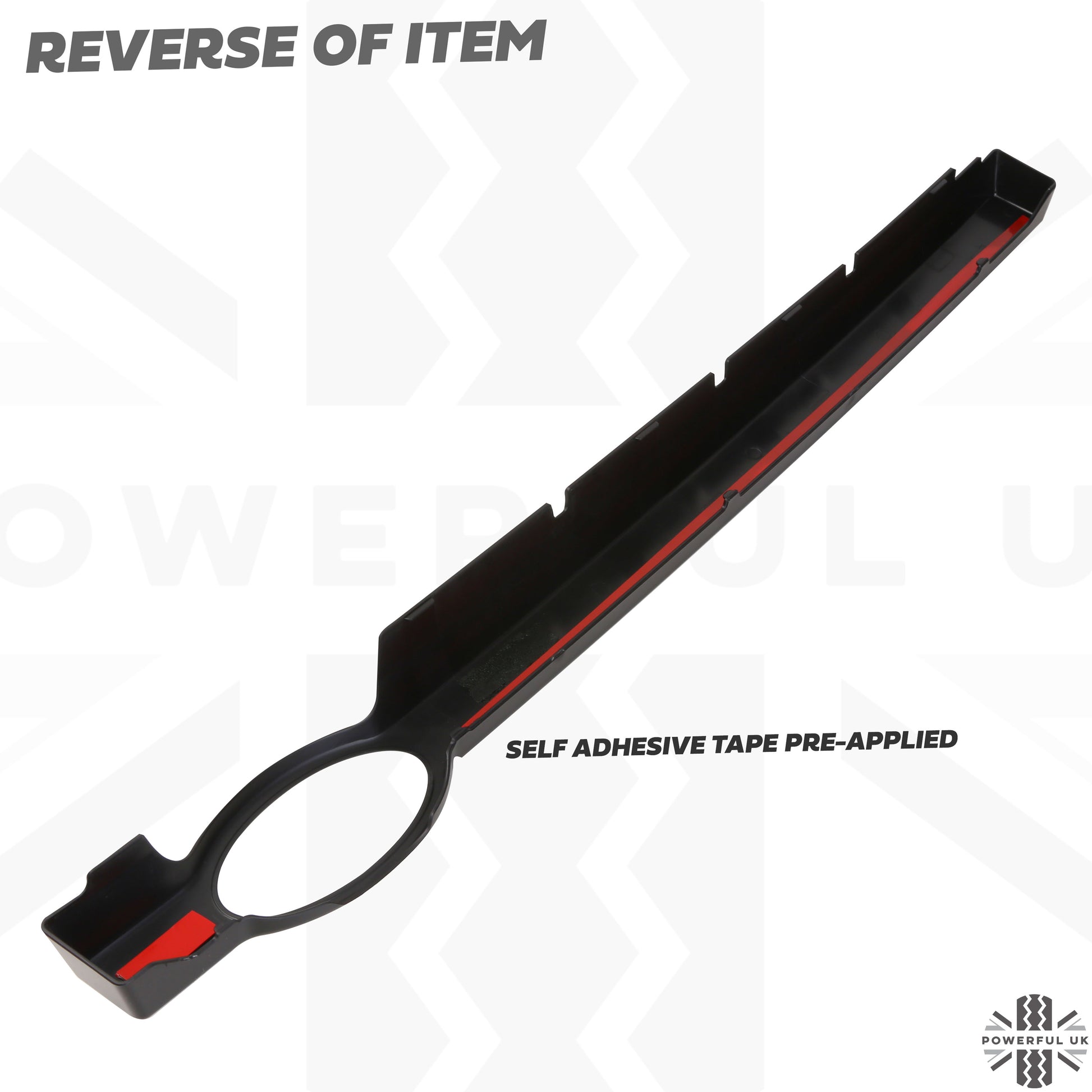 The cover is engineered to snap into place but is also fitted with self adhesive tape for extra security/anti rattle.