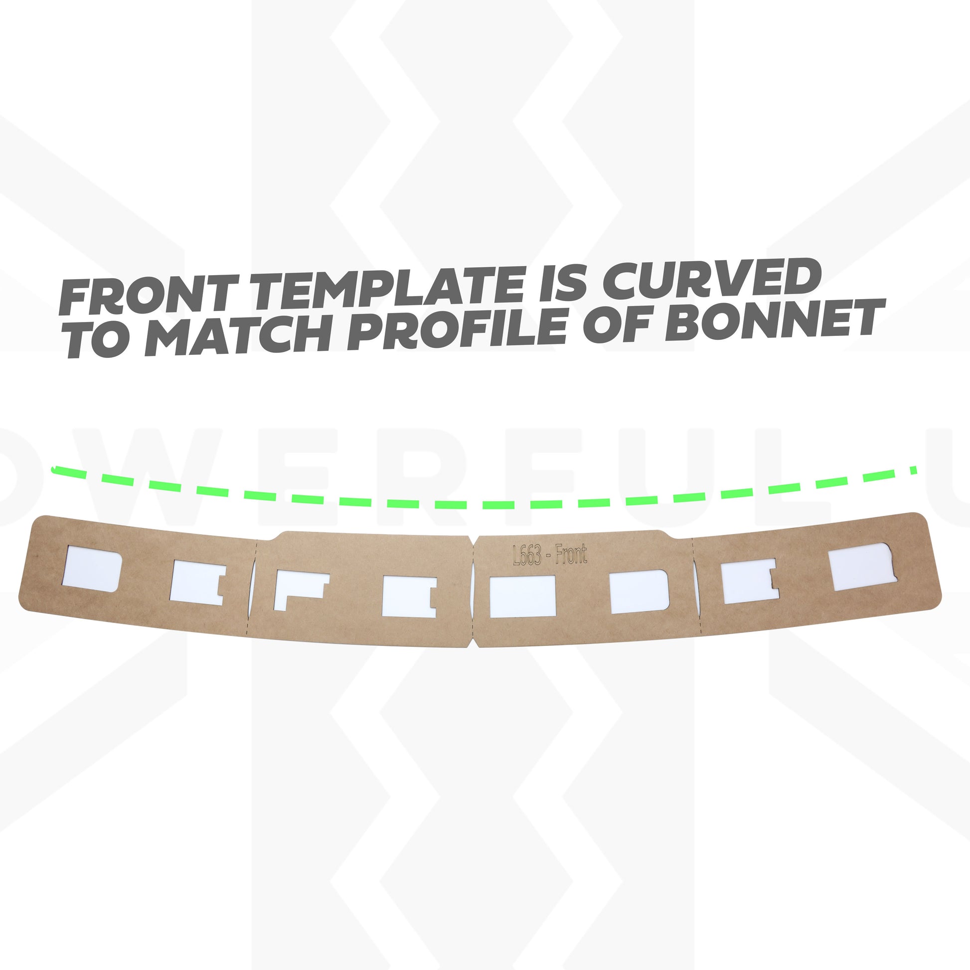 This template is curved to follow the shape of the bonnet.