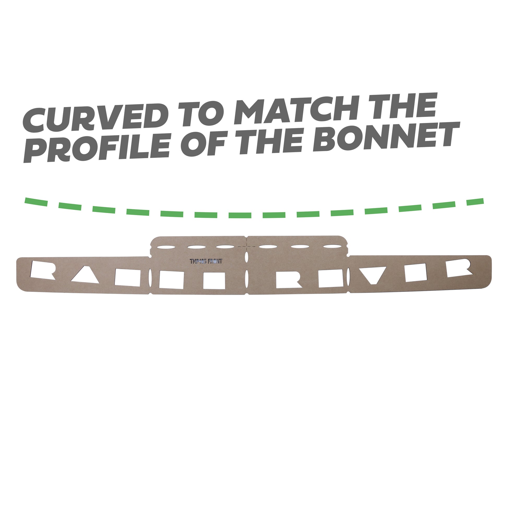 This template is curved to follow the shape of the bonnet - see our other listing to purchase the template for the rear lettering (different shape).