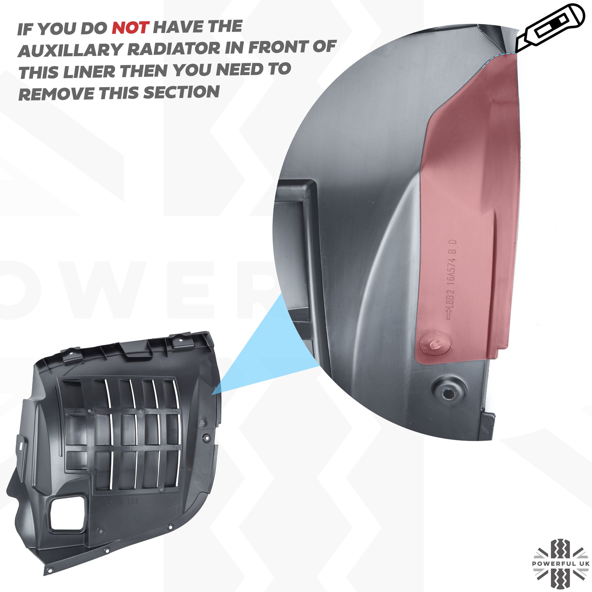 This part can be configured in 2 ways depending on your engine spec - if you DO NOT have the extra auxilary radiator then you'll need to remove the cut out section marked on the item (see photo).