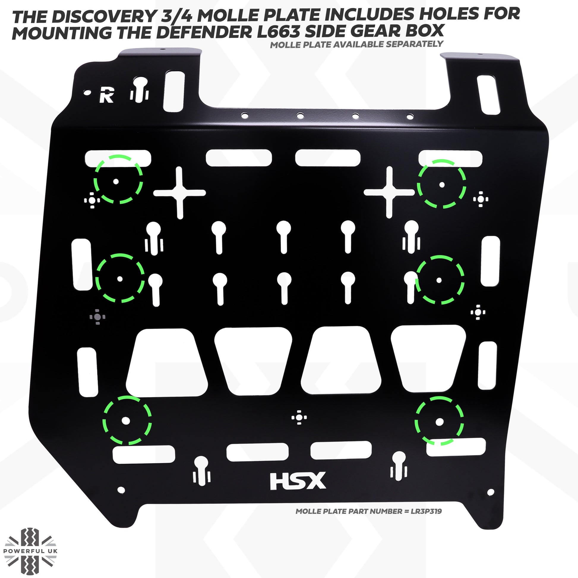 This listing is for a fixing kit which will allow you to mount the Land Rover Defender L663 side gear box to our Powerful UK Discovery 3/4 Molle Plate.
