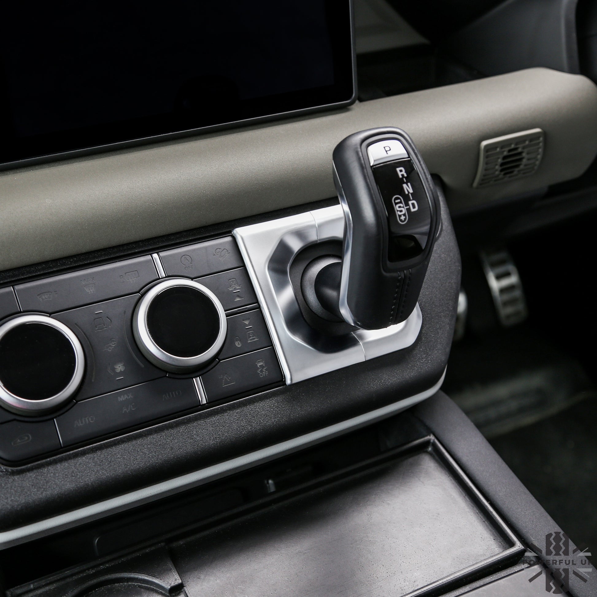 This listing is a 'silver/matt chrome' gear selector surround trim for the Defender L663.