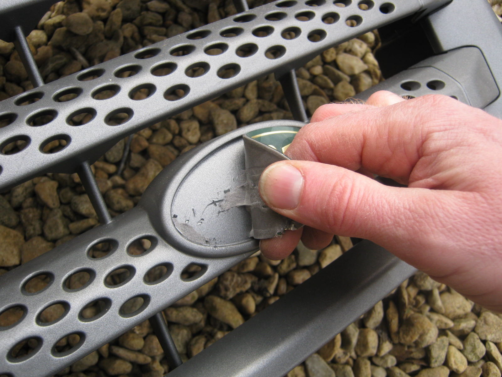 Remove the old badge - using a heat gun can help to soften the adhesive.