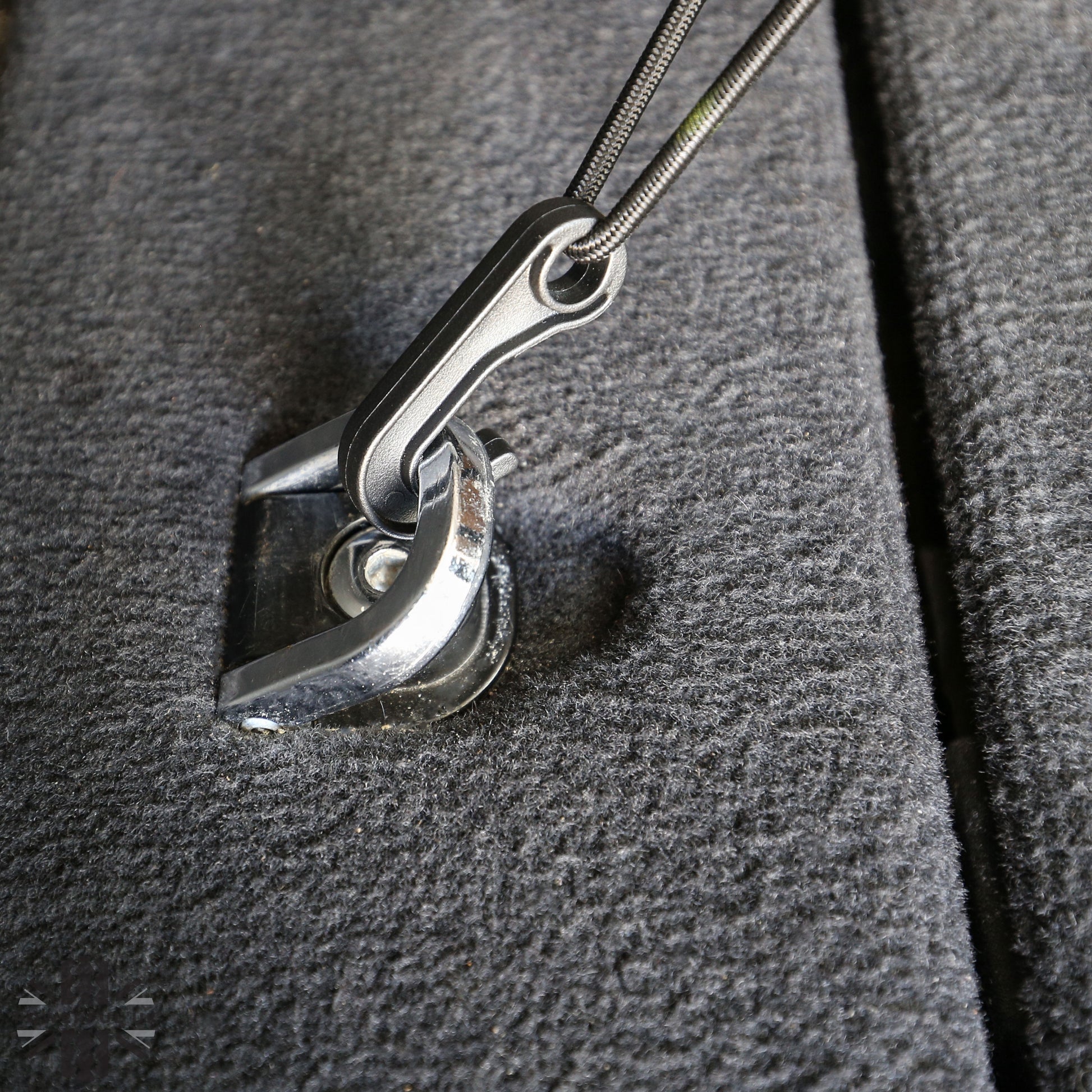 The hooks on the cargo net clip onto the tie-down loops in your boot.