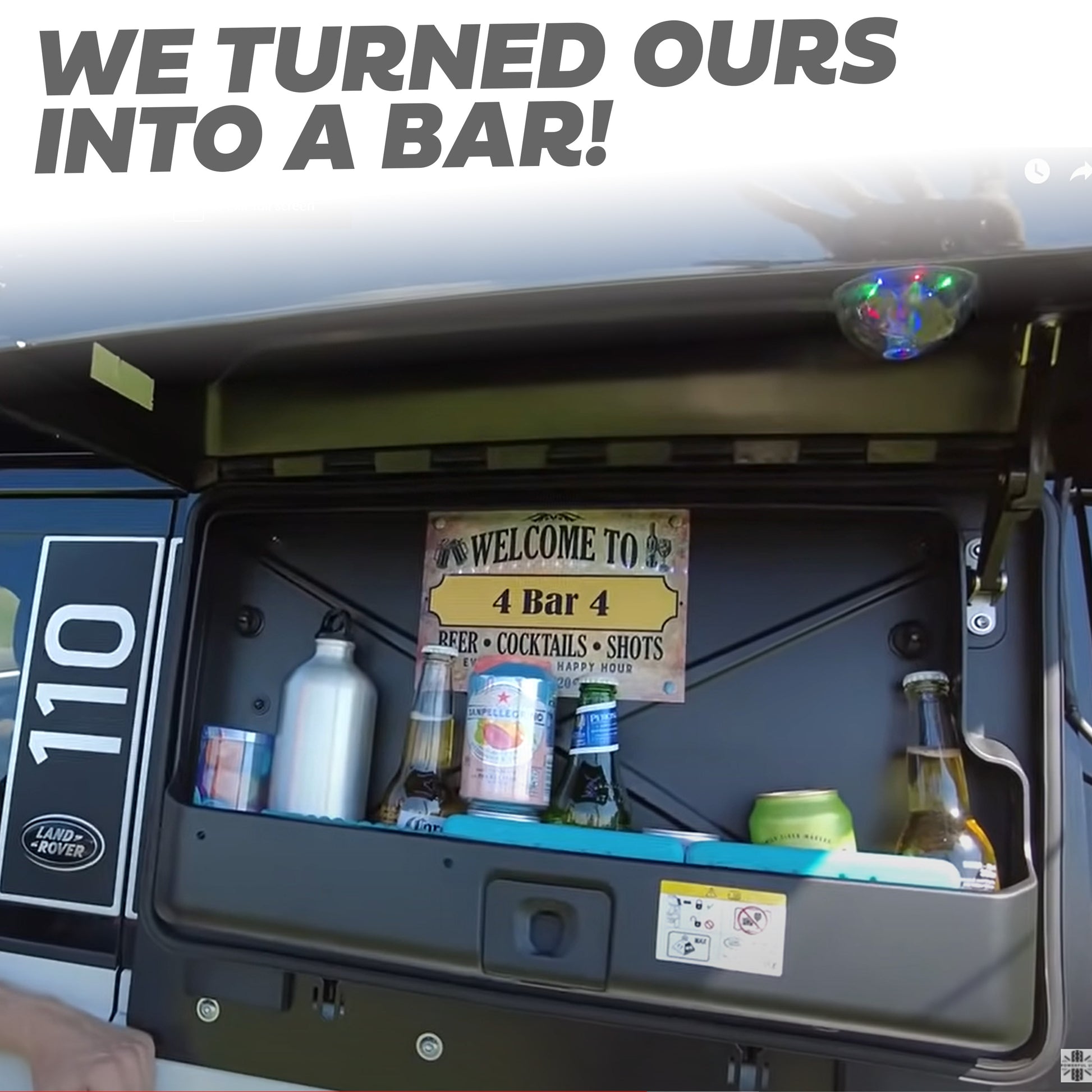 The exterior side-mounted gear carrier provides easy to access storage on the outside the vehicle..... we used ours as a bar when camping! (see photo).