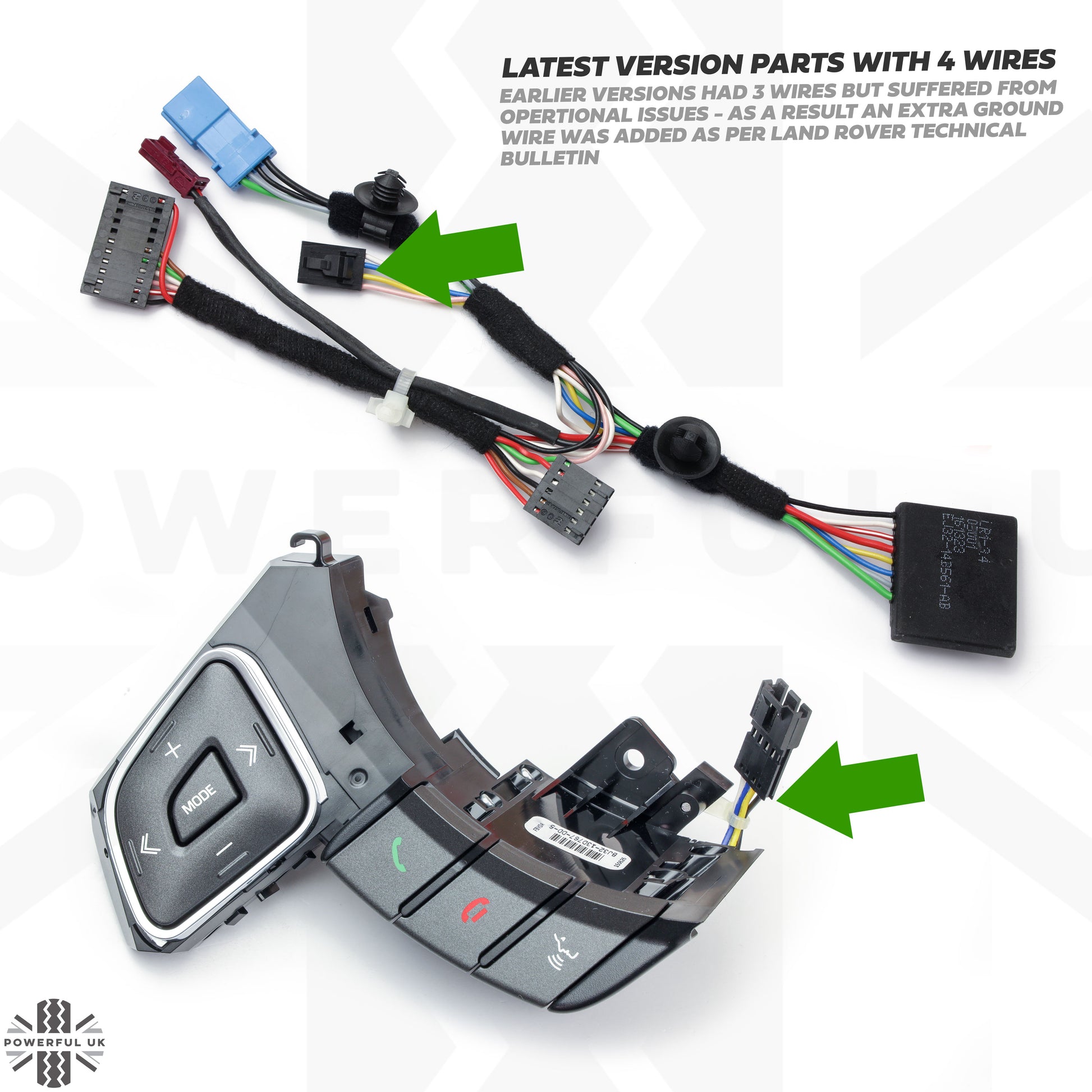 Note this kit contains the latest version switch pack and loom which have an extra ground wire which was added to fix problems with the switch pack functioning correctly (Land Rover Technical Bulletin LTB00663NAS6).