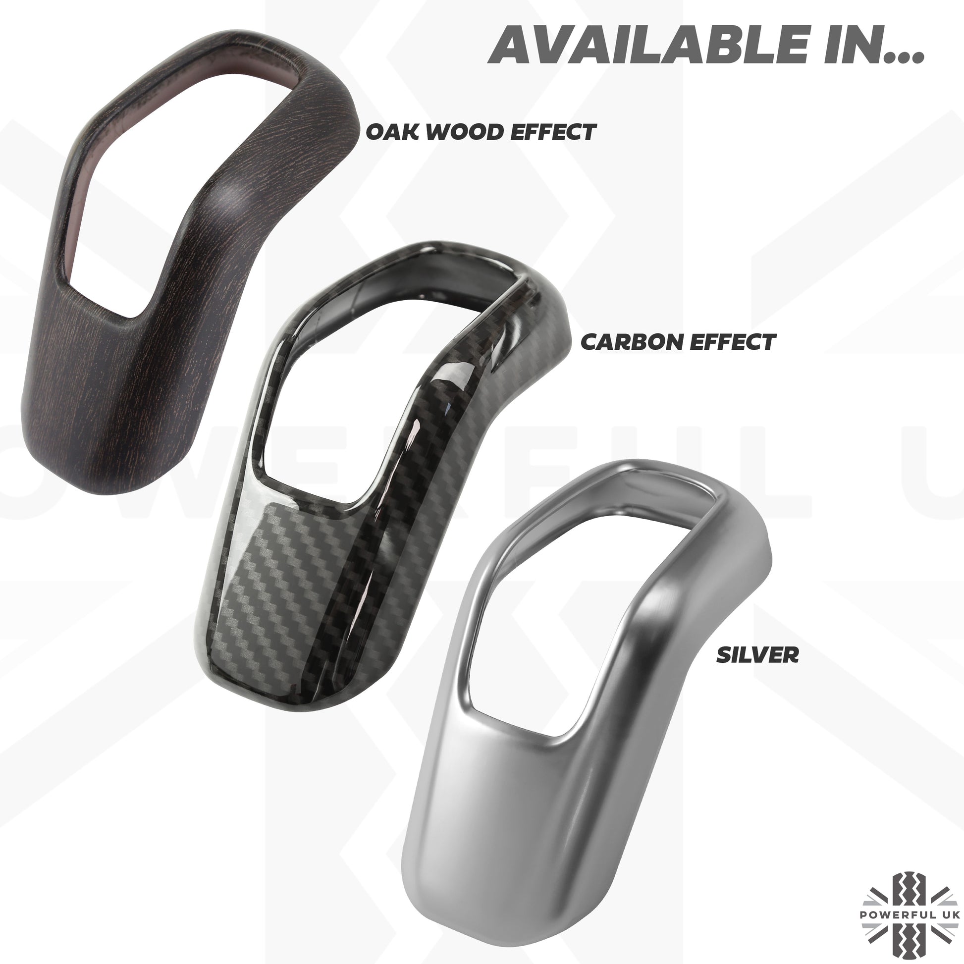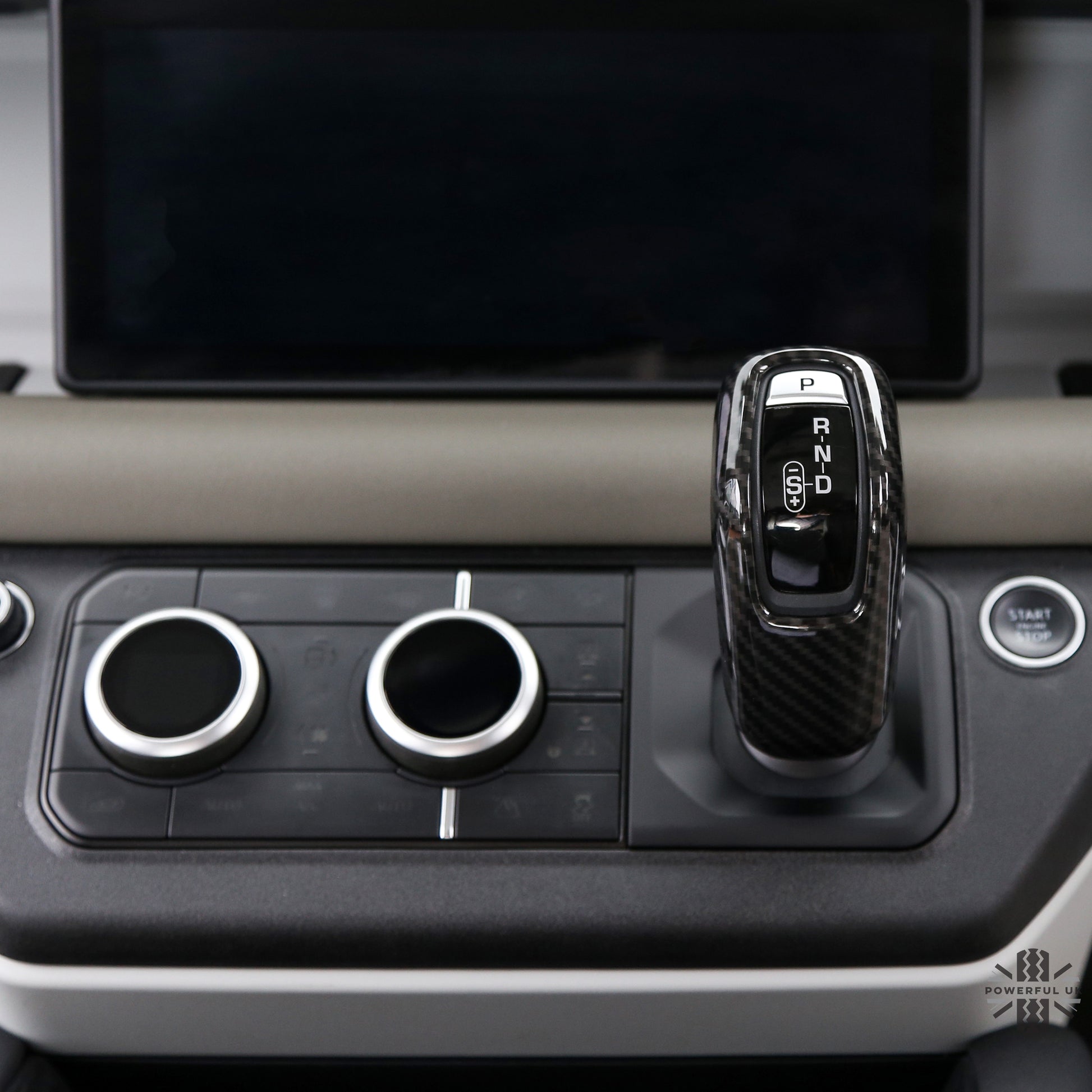This listing is for a carbon effect gear selector lever trim cover for the Defender L663.
