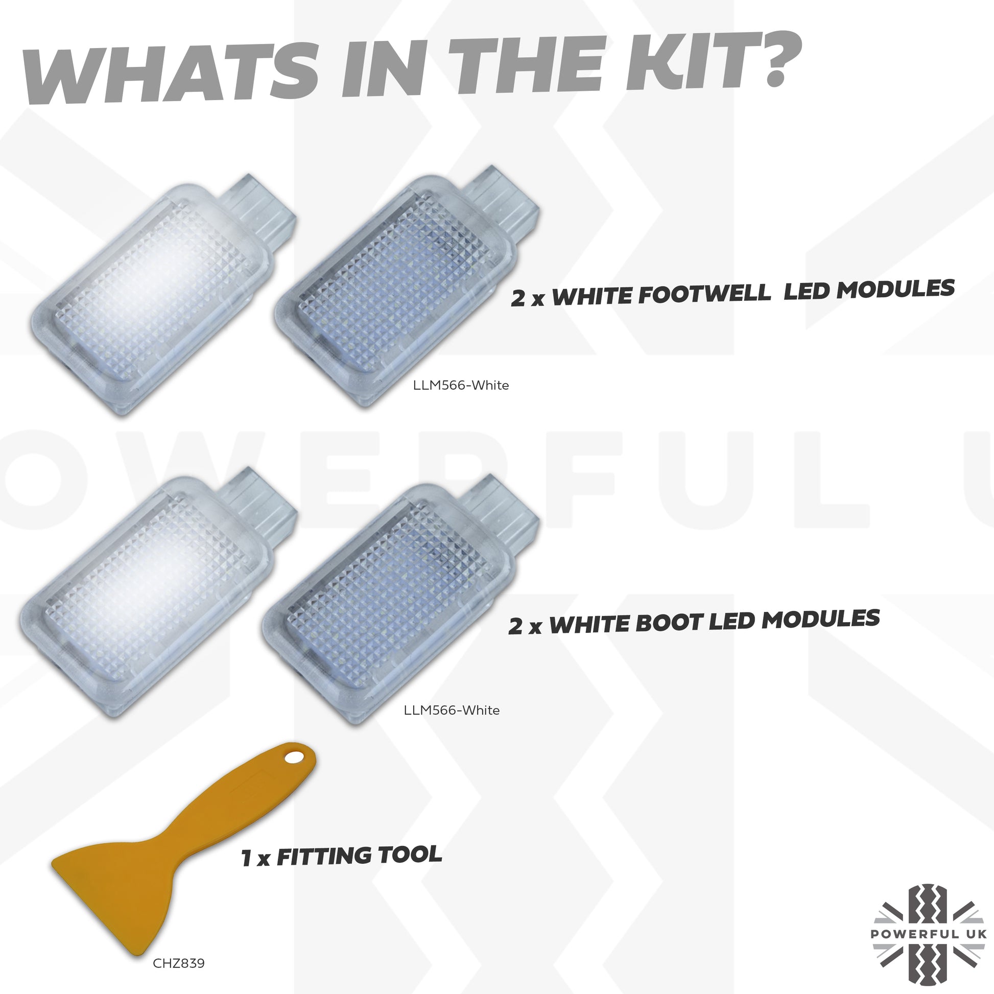 - 2 x WHITE boot lights - these give you a brightness upgrade to the standard LEDs
