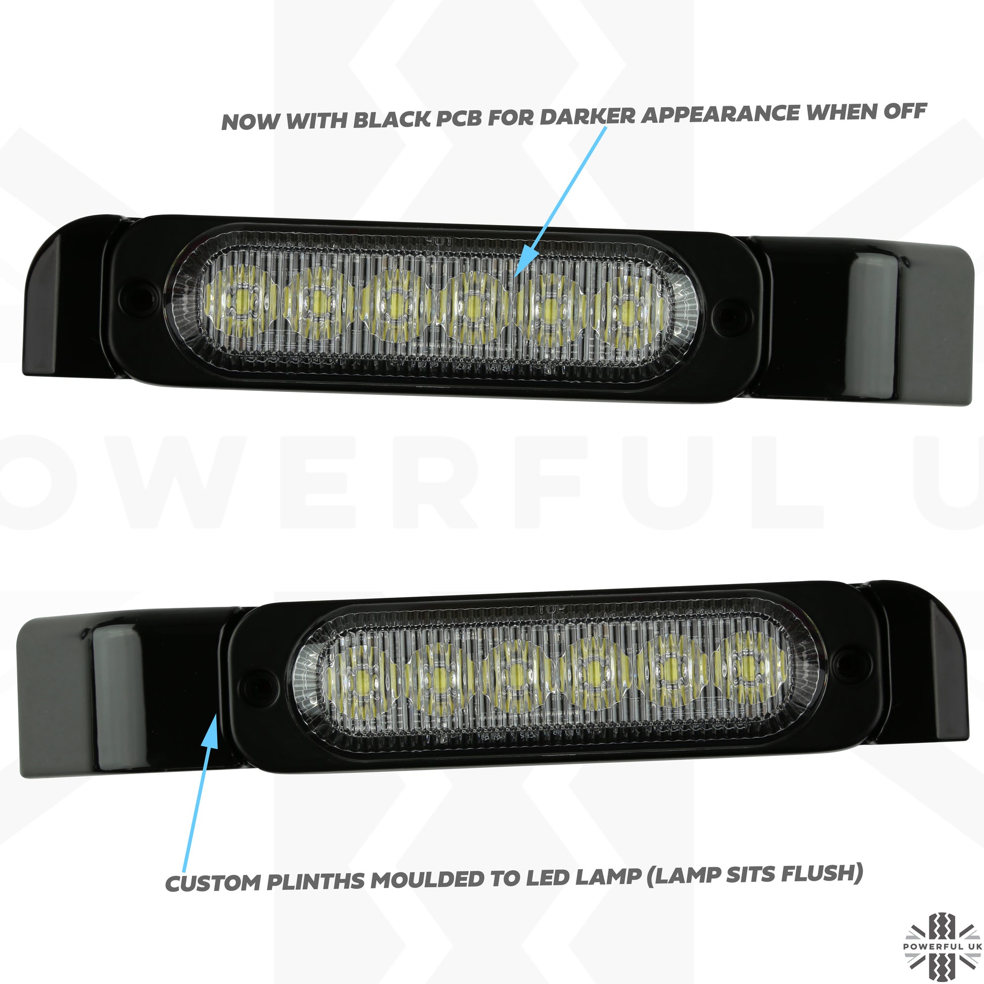 We have utilised the recesses in the rear of the Defender to allow you to fix in 2x additional LED lamps and we have designed custom shaped plinths which house the LED units perfectly (and sit flush).