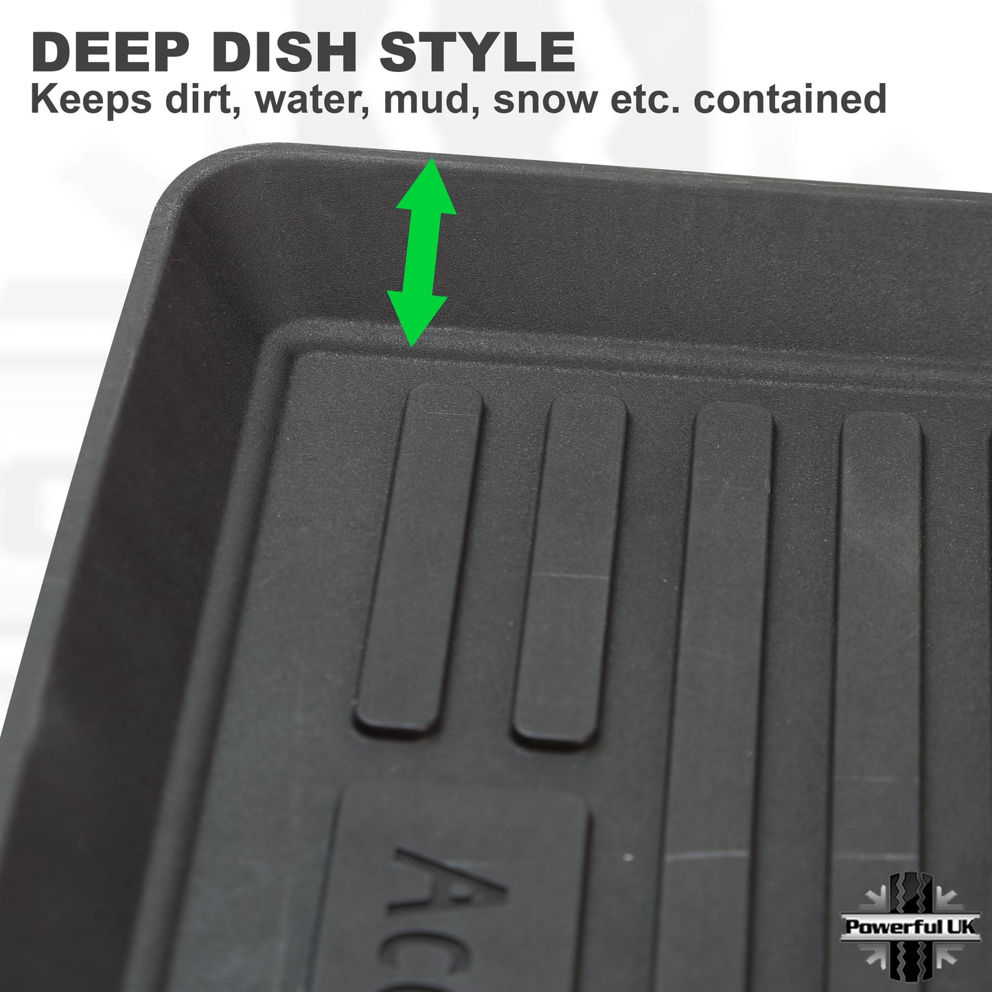 These are 'deep dish' style mats that are designed to retain dirt, snow and mud and preserve your carpets and upholstery.