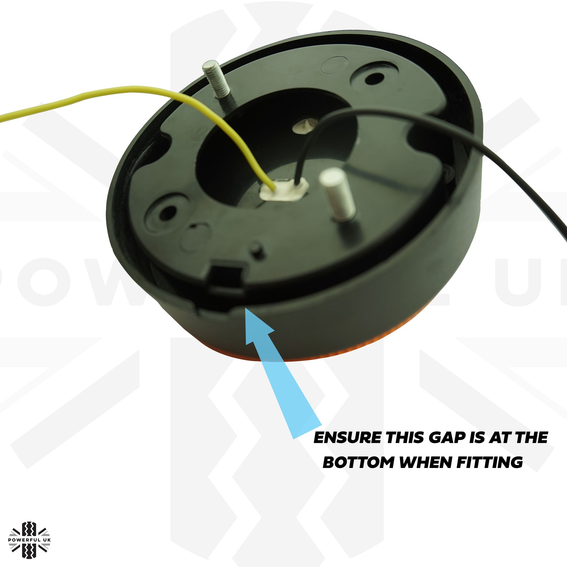This listing is for a pair of NAS (North American Spec) style LED orange indicator light lamp assemblies for the original Land Rover Defender.