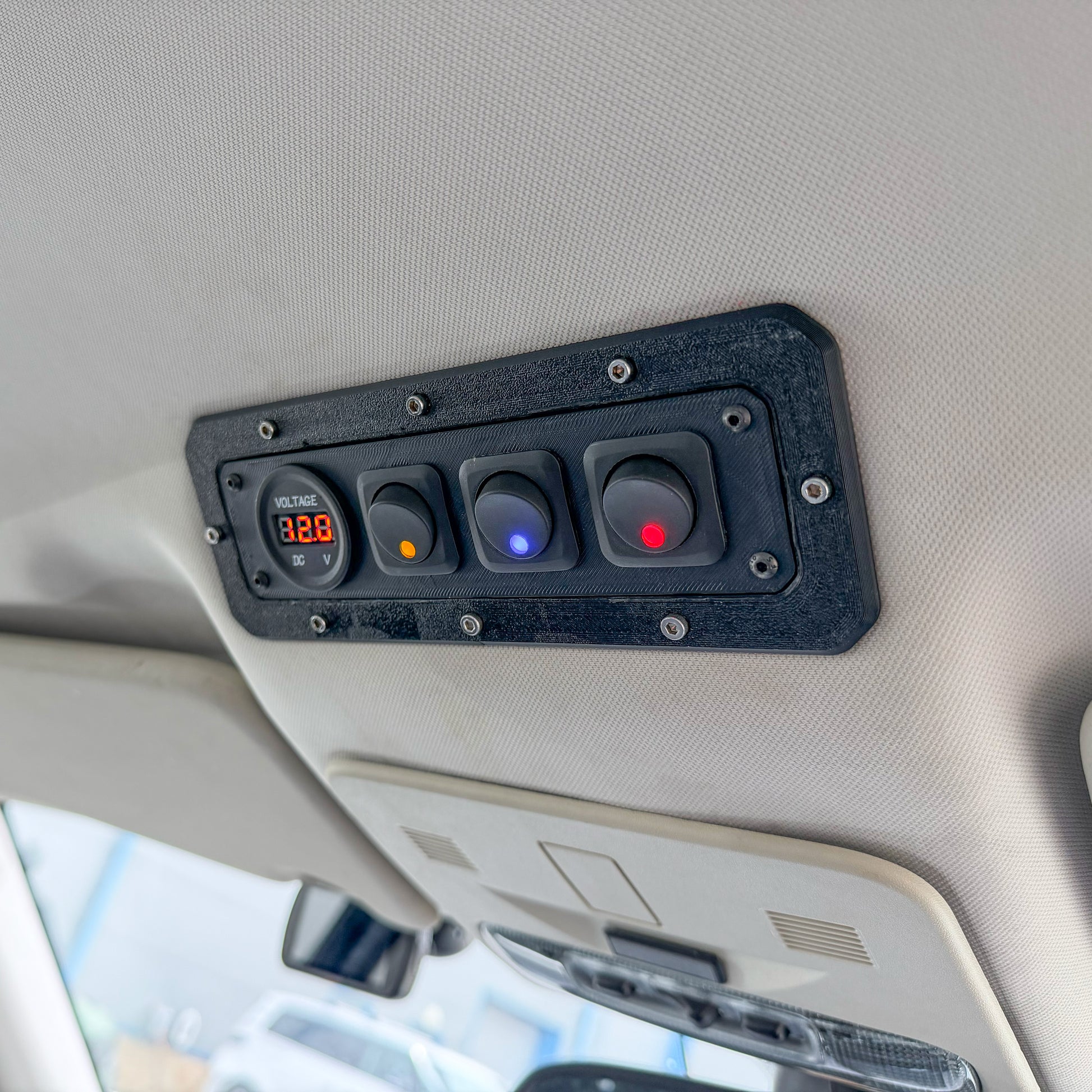 This is designed to fit into the headlining of your vehicle to give you a handy, easily accessible switch panel for accessories such as auxillary lighting etc.