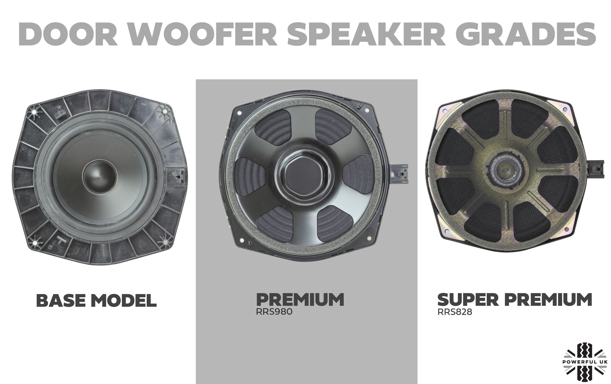 This listing is for a set of four genuine Range Rover door speakers as fitted to the "Premium" sound systems.