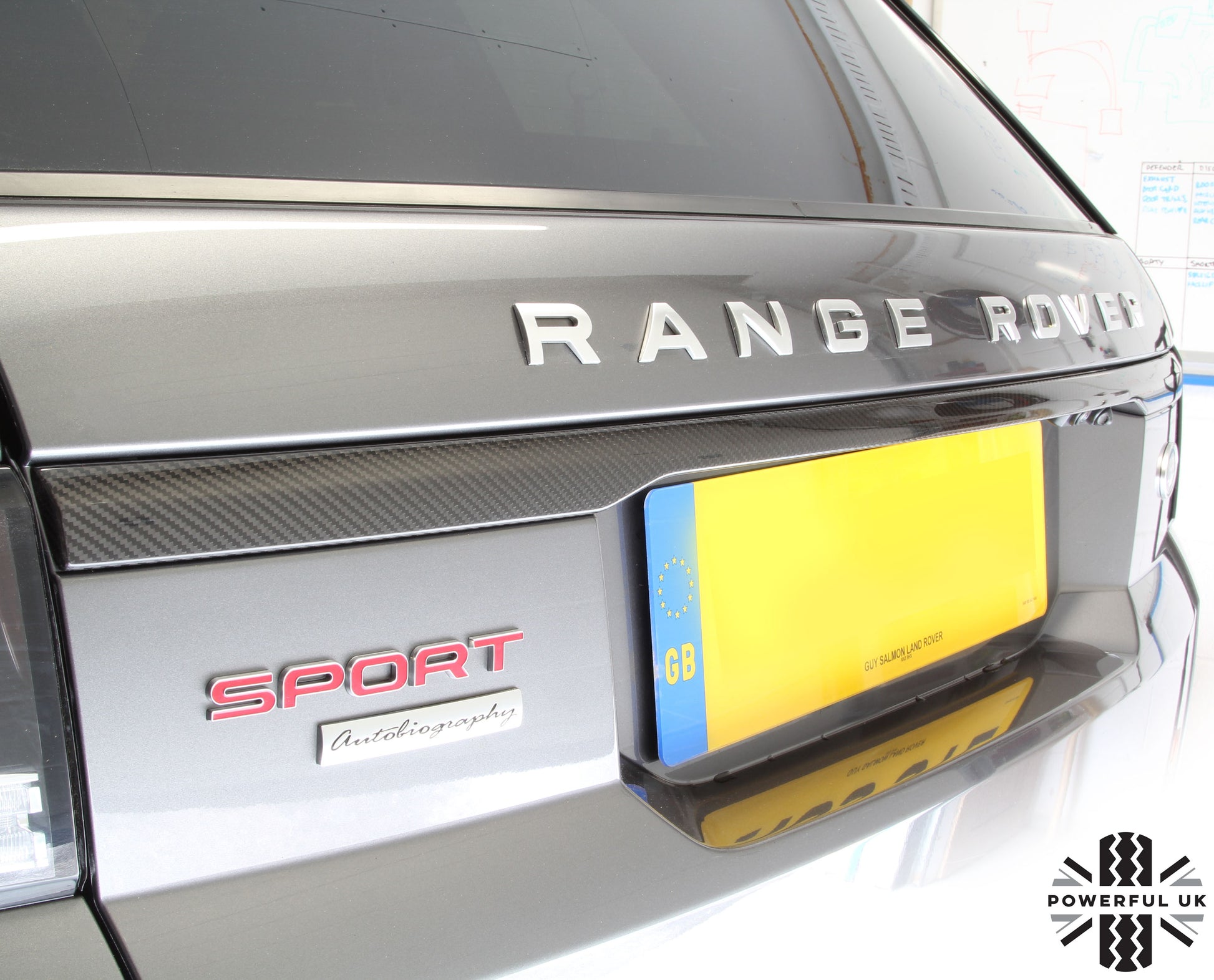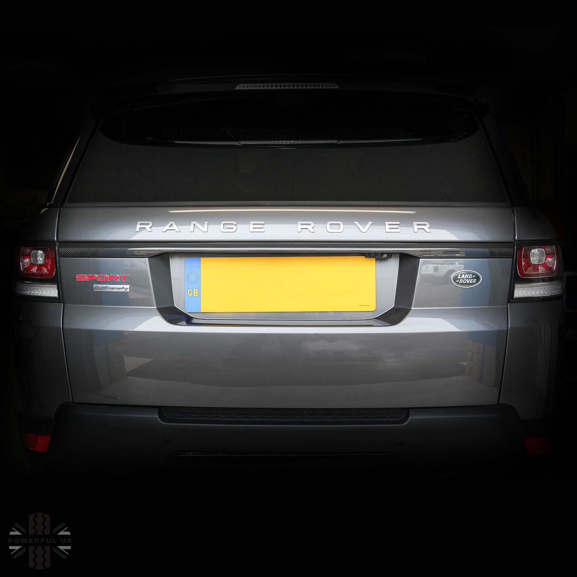 This carbon fibre tailgate trim is fitted as part of the 'Carbon Pack' option on the top of the range Range Rover Sport SVR.