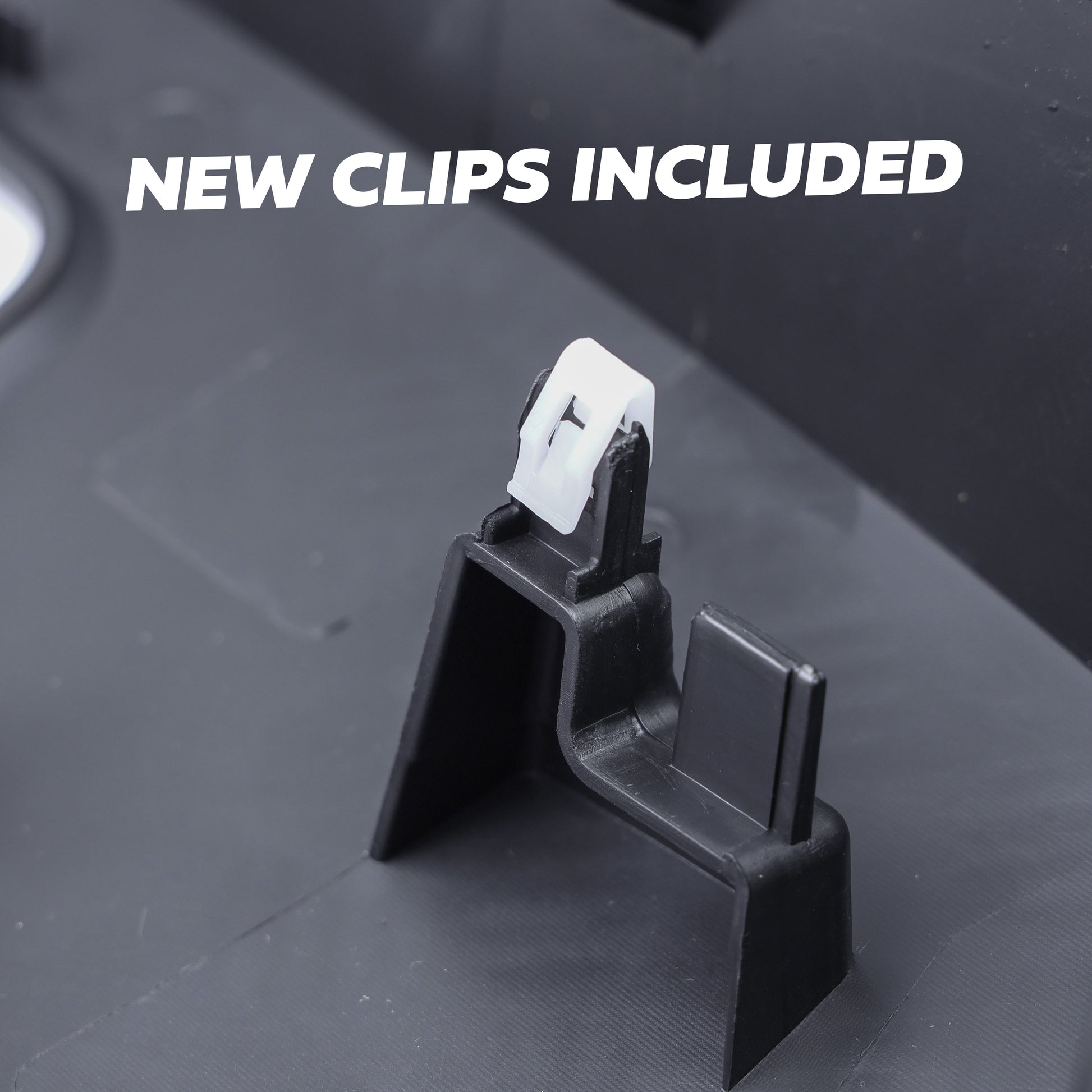 You will receive a pair (Left & Right) of corner panels plus 12x new fitting clips (6 needed per side).