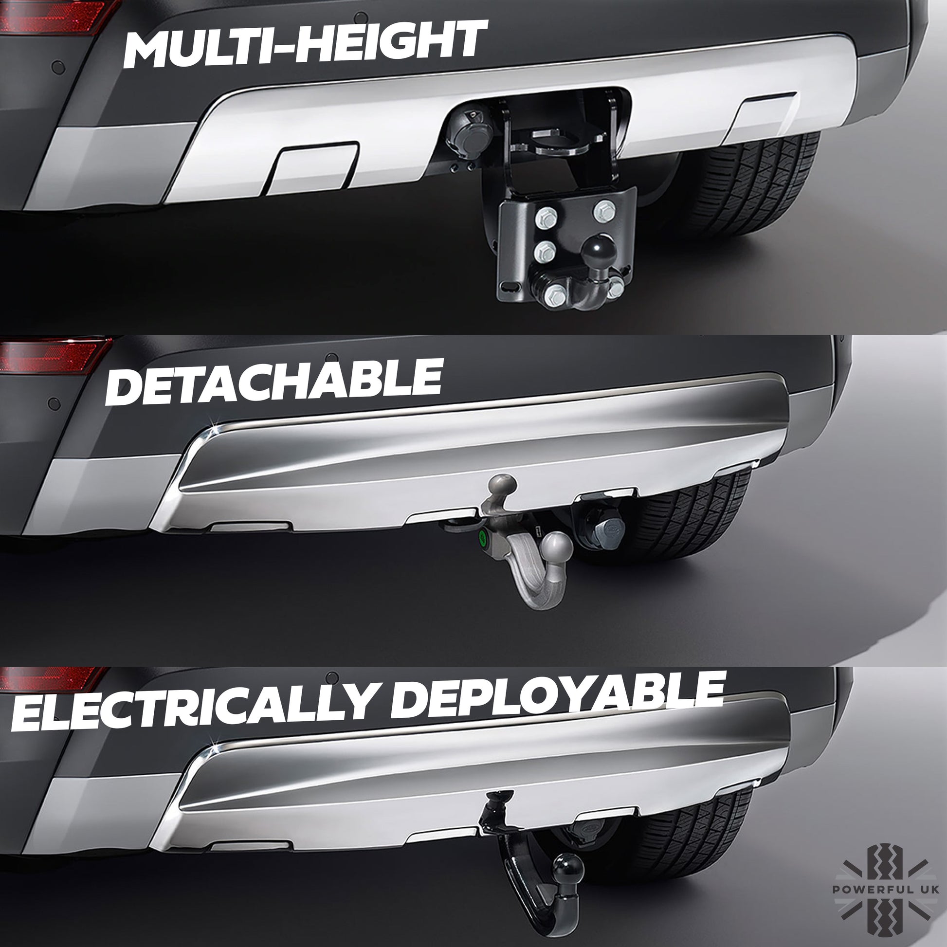 - Electrically Deployable hidden behind a special tow eye cover and electrically deploys