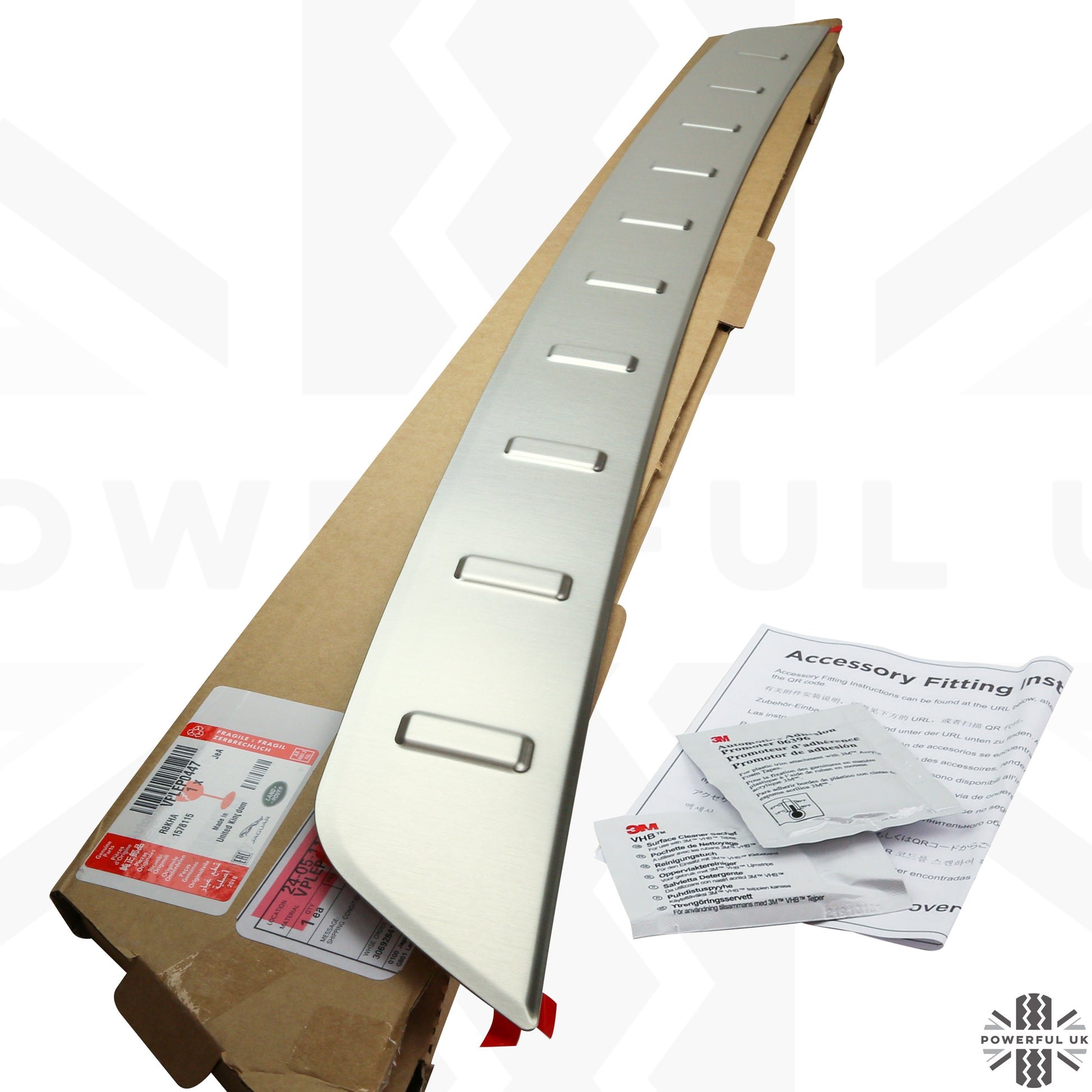 This listing is for a genuine Land Rover Stainless Steel plate rear bumper strip for the Land Rover Defender L663.