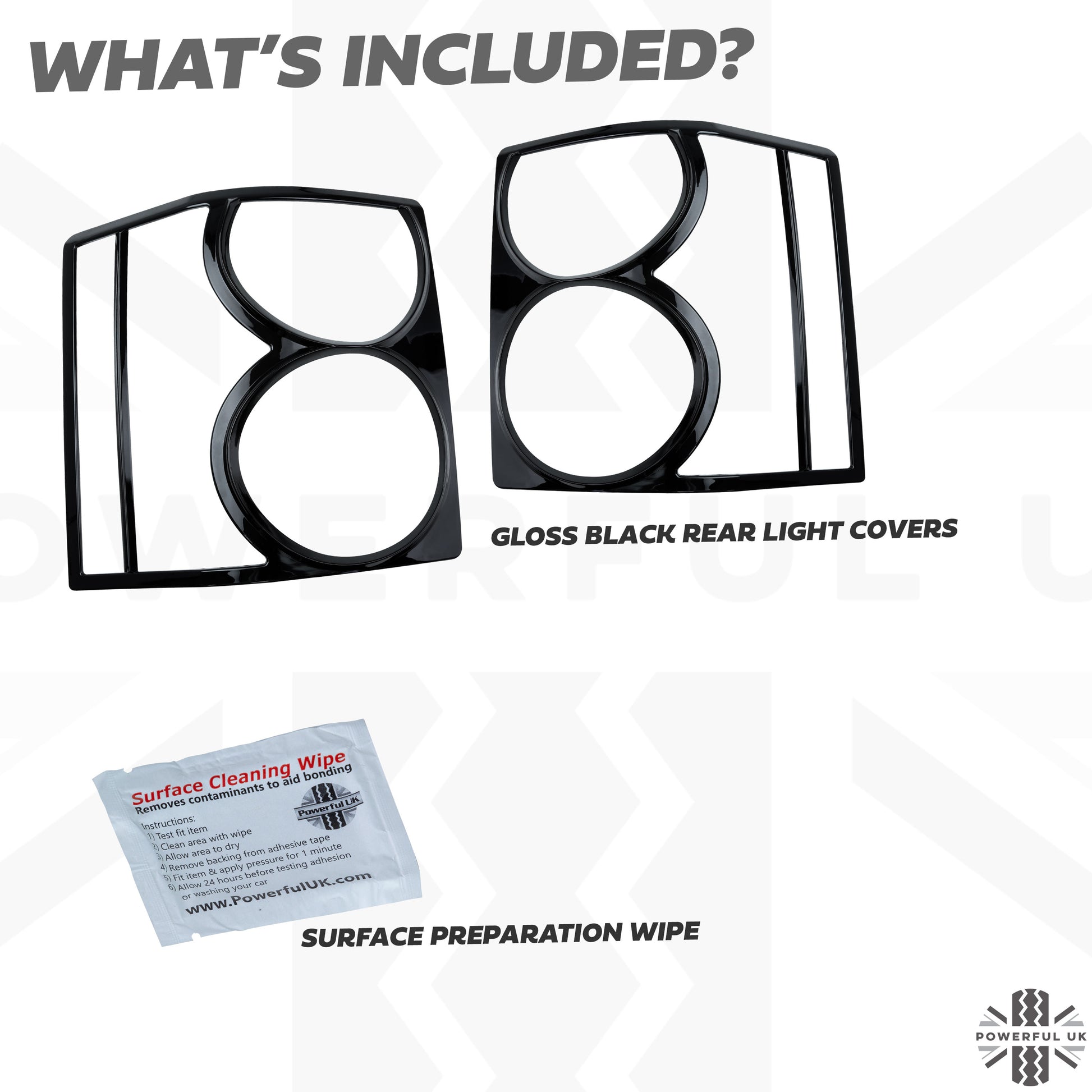 These covers simply fit over the plastic lens of the original lights and are fixed in place with pre-applied self adhesive tape.