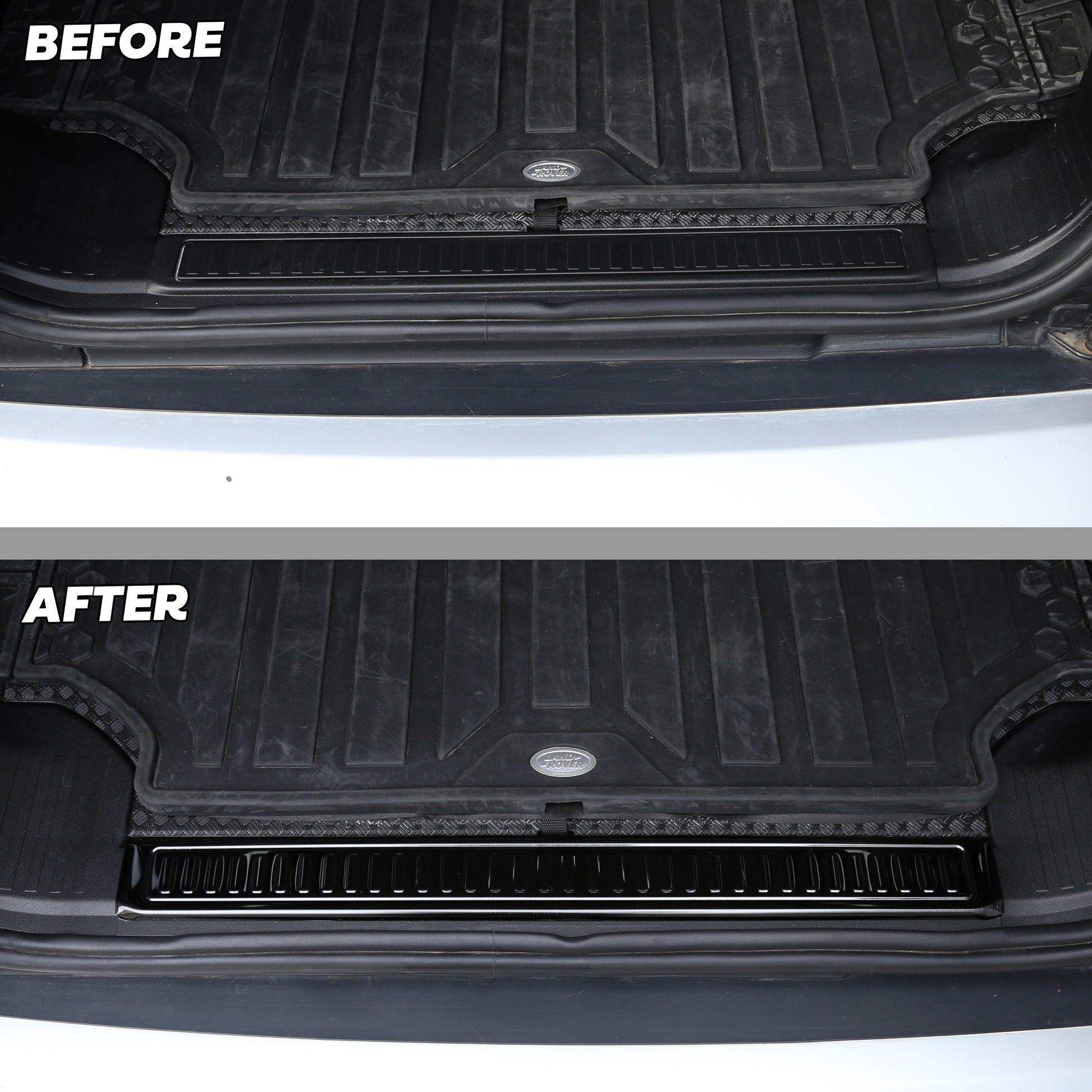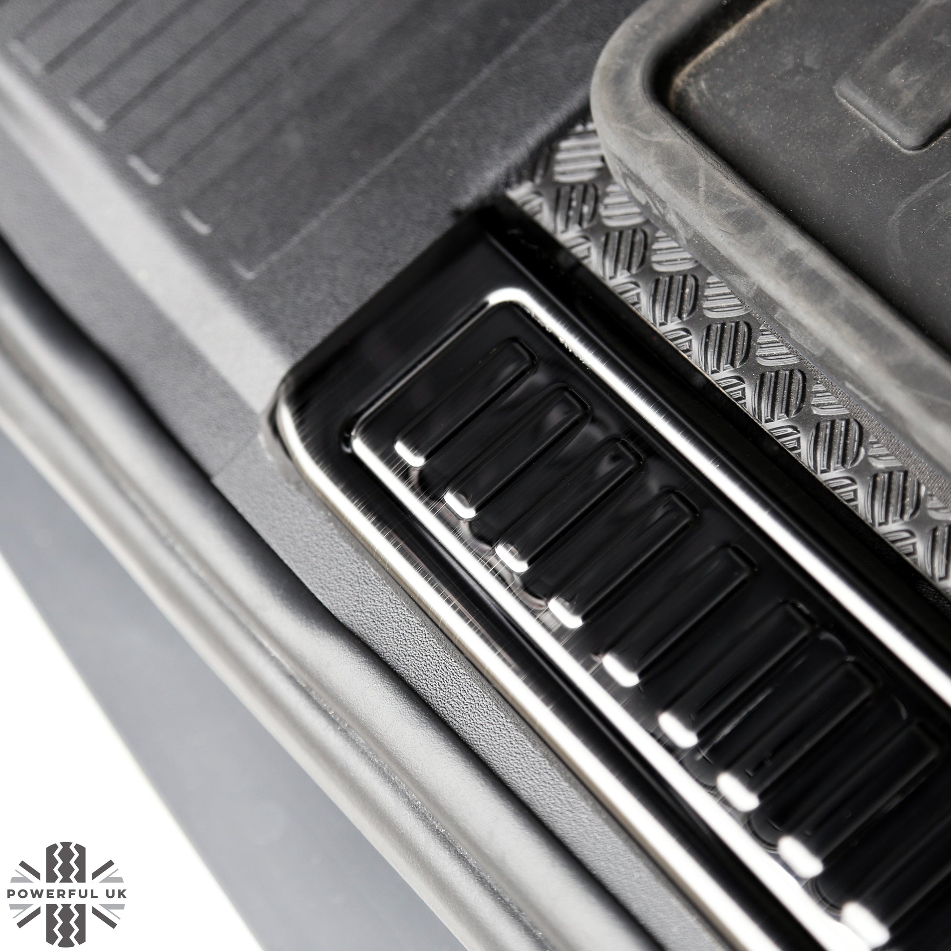 This listing is for a boot threshold trim in BLACK Brushed Stainless Steel for the Defender L663.
