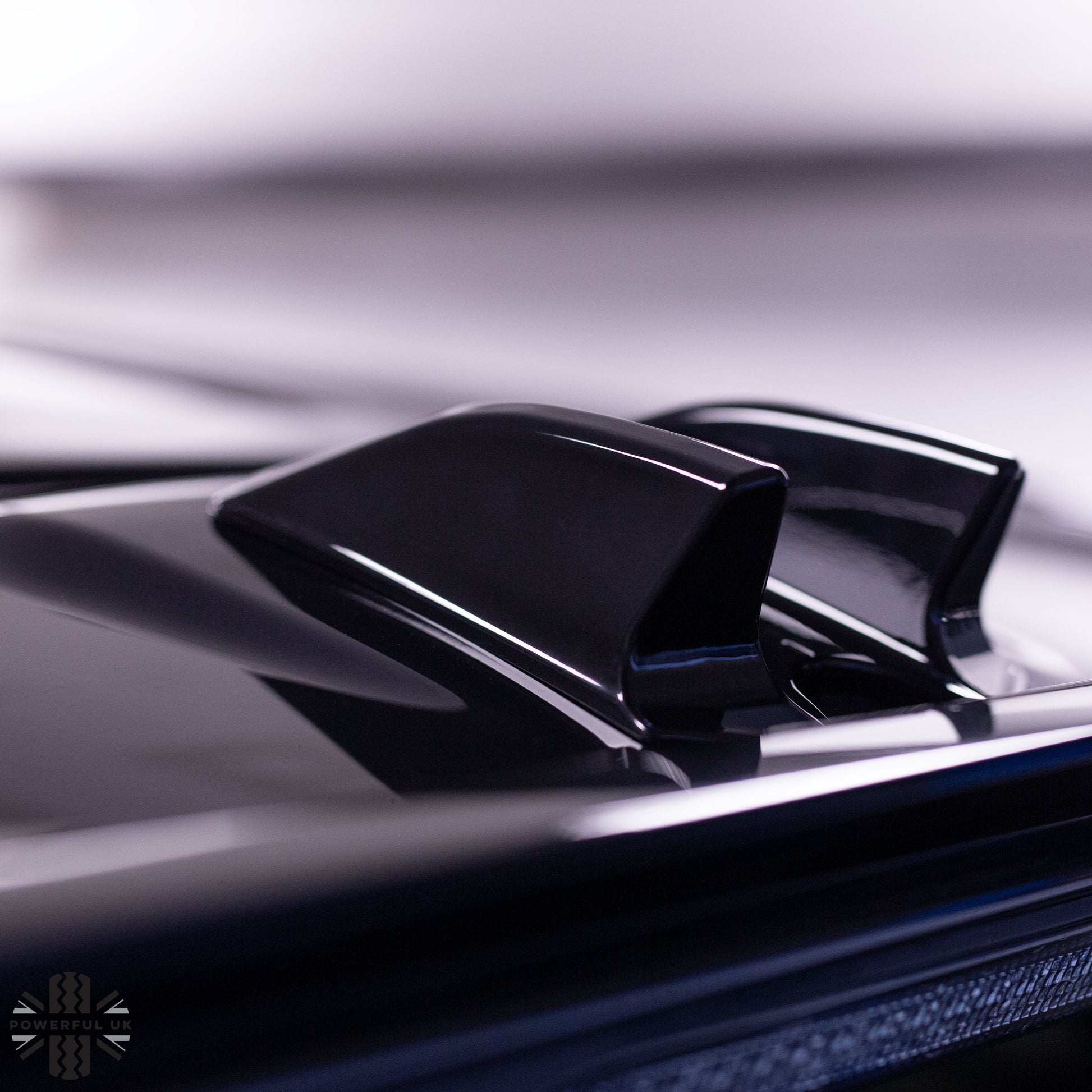 Upgrade the look of your Range Rover Evoque by fitting one of these gloss black dummy 'Twin Shark Fin' rear spoiler aerials.