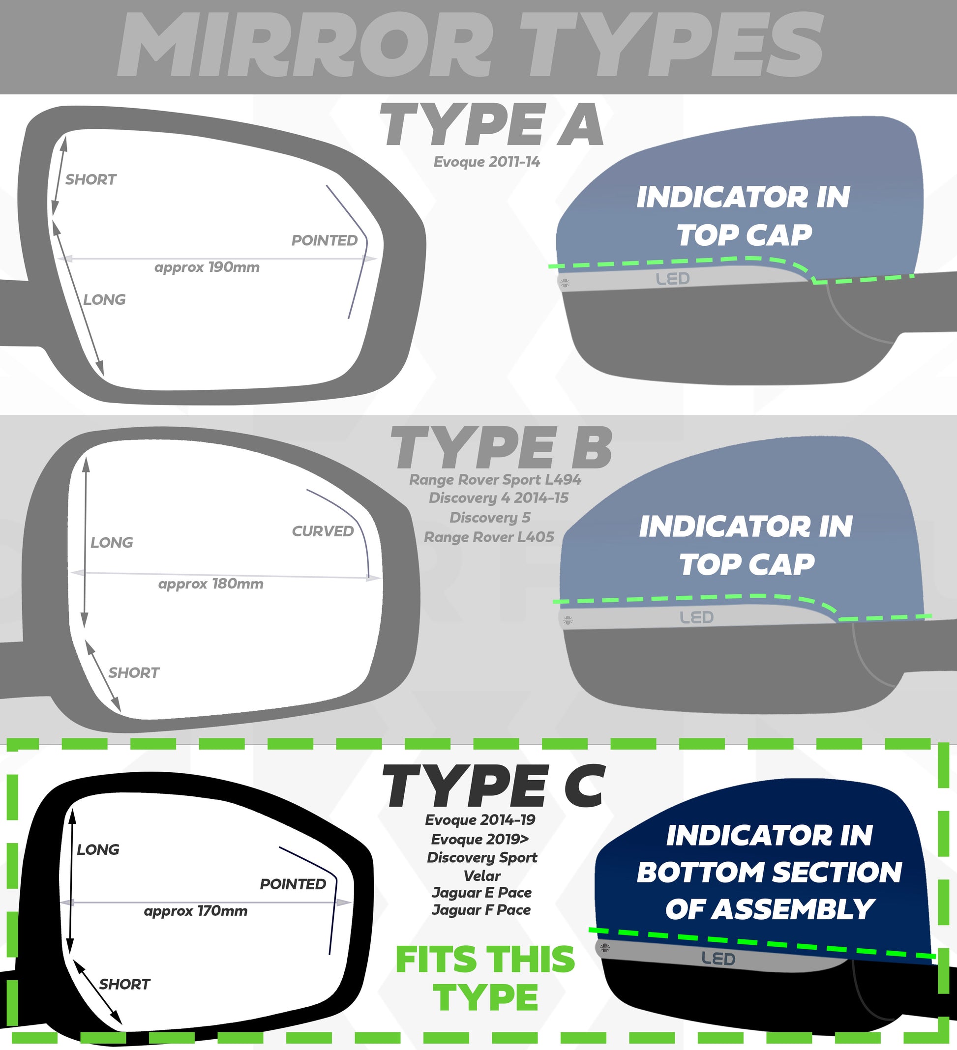 This is a straight replacement unit - simply remove your existing mirror caps and replace with these!