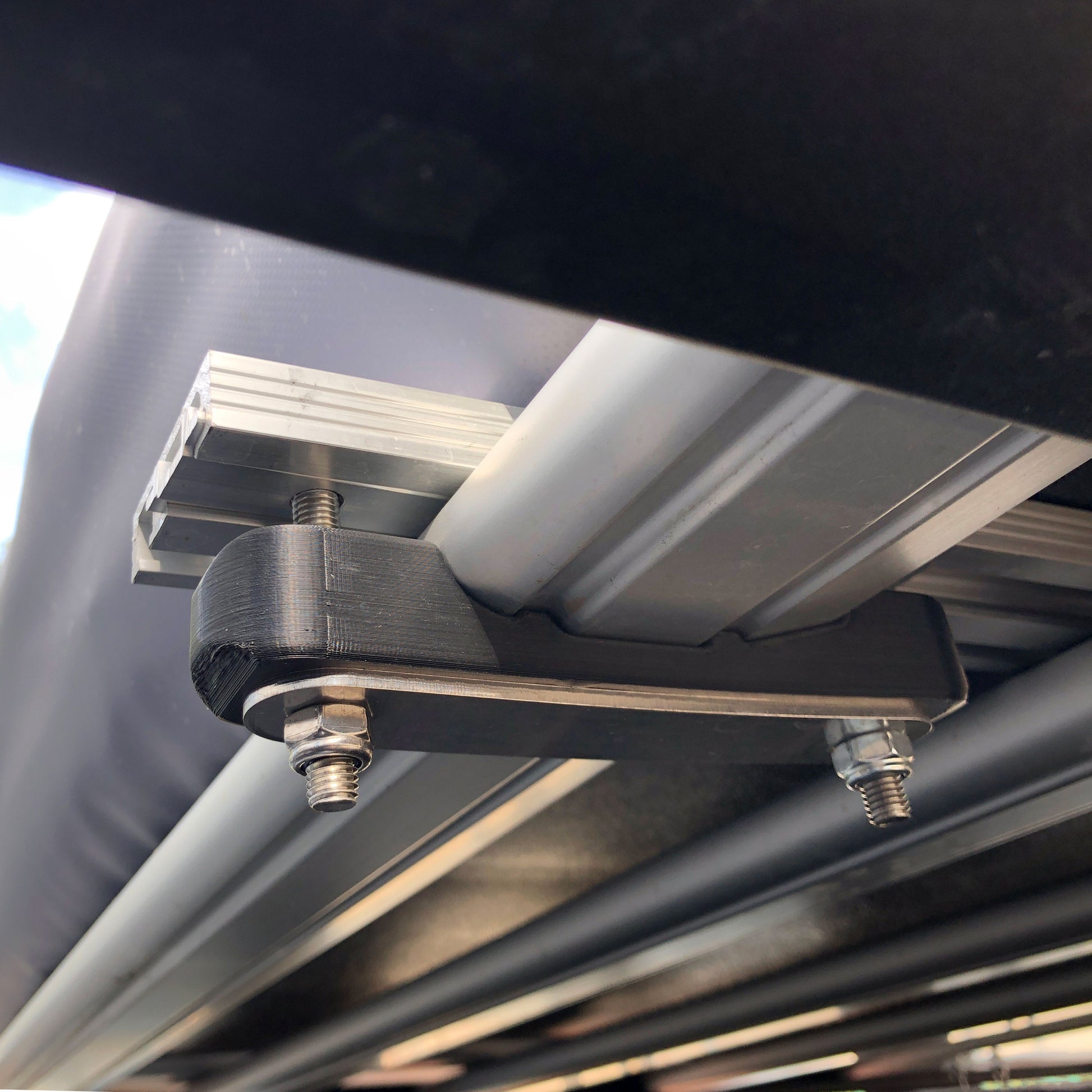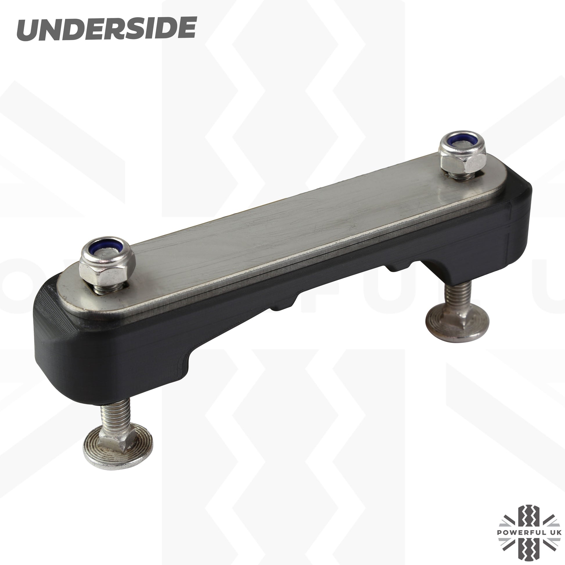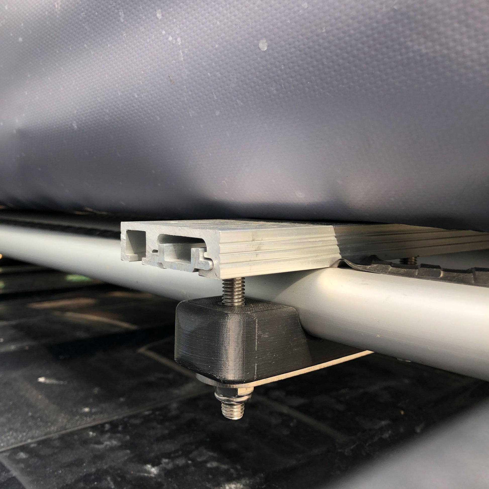 The kit consists of an injection moulded ABS clamping 'block' which fits the underside profile of the cross rail perfectly.