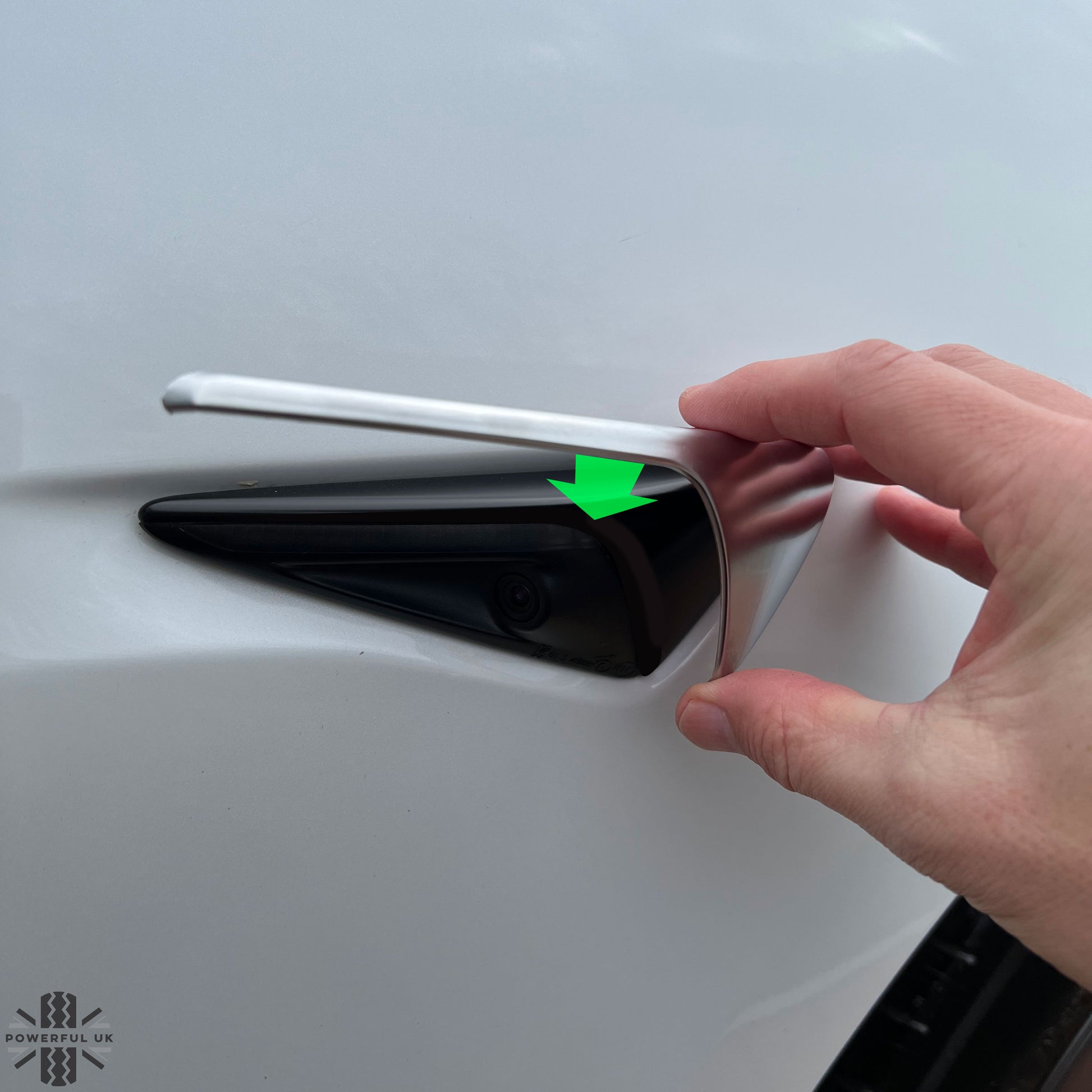 Remove backing from pre-fitted self adhesive tape and apply to the car.