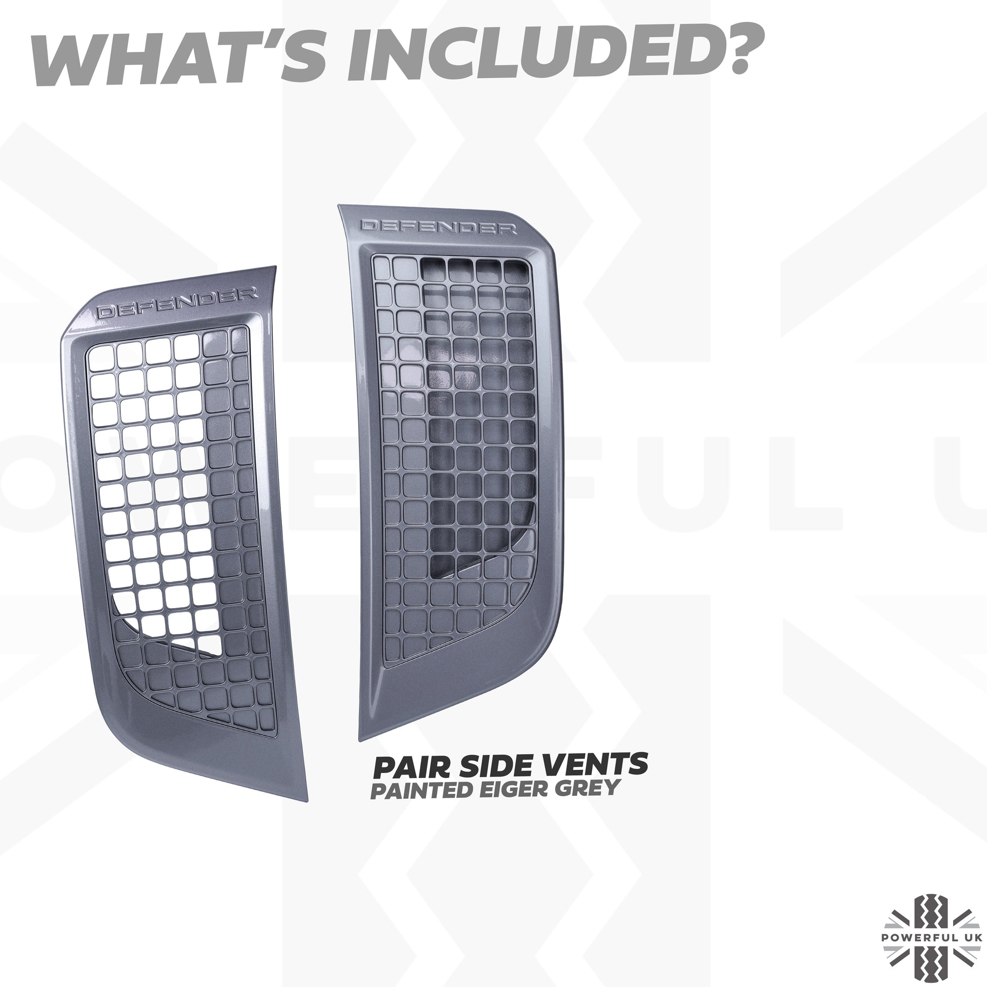 This listing is for a pair of painted side vent assemblies panels for the Land Rover Defender L663.