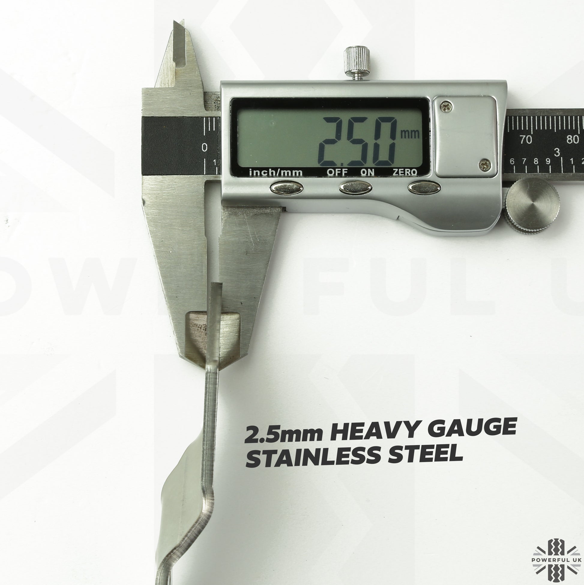 This is an aftermarket replacement stainless steel bracket for the raised air intake (snorkel) for the Land Rover Defender L663.