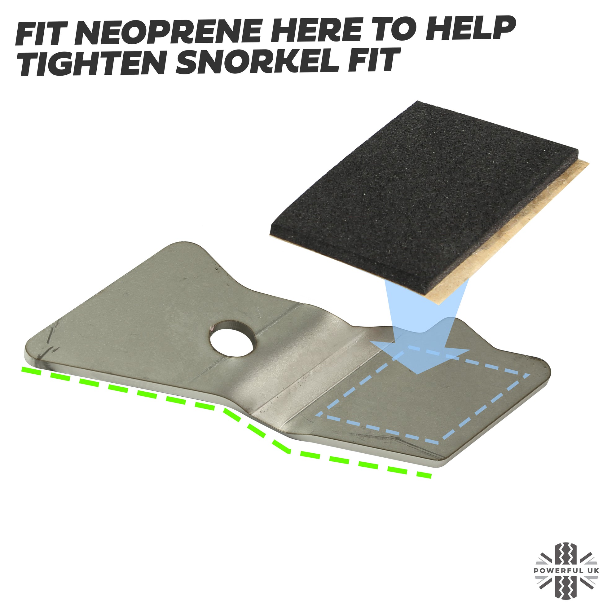 Fit the small piece of neoprene to the inside of the metal bracket - this will help tighten up the fit of the snorkel.