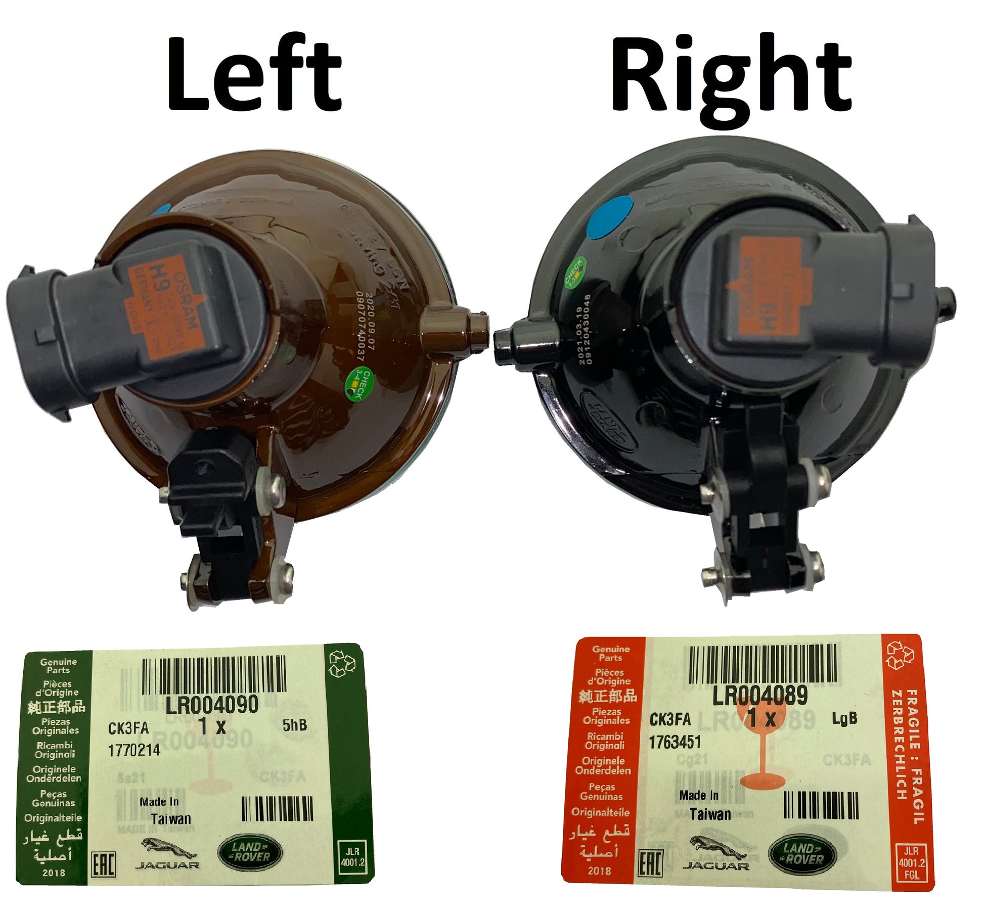 These lights are handed - the only difference seems to be the direction the bulb connector points.
