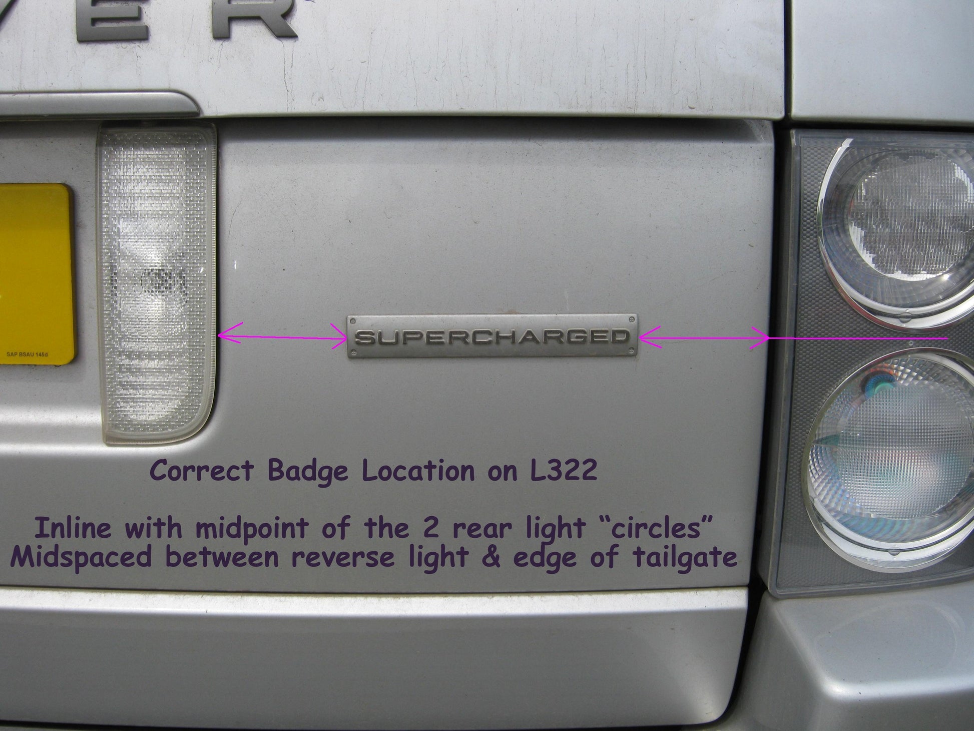 You will need to remove the VOGUE / HSE lettering from the rear of your vehicle as the original supercharged car has only this badge.