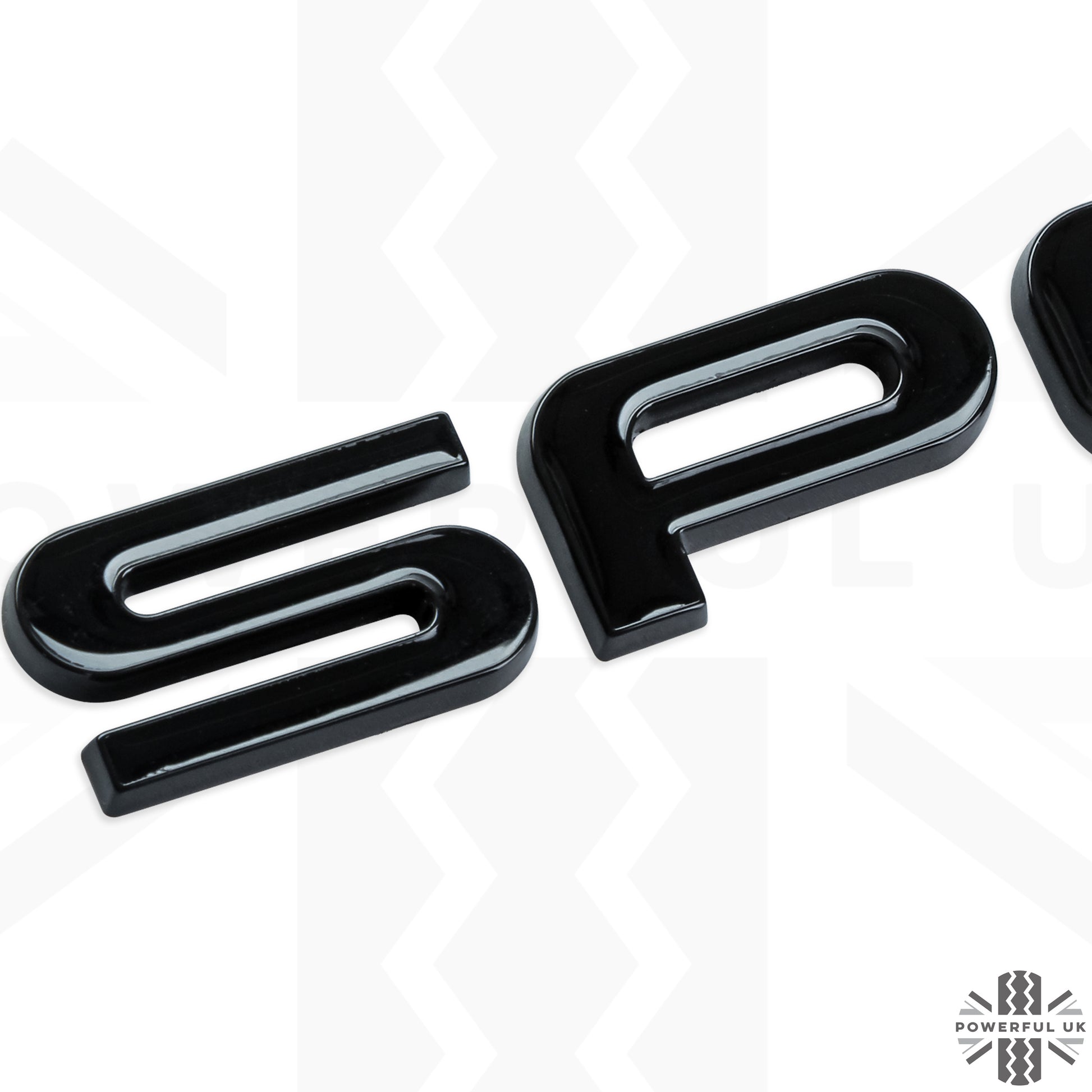 This is a set of SPORT tailgate lettering in gloss black for the Land Rover Discovery Sport.