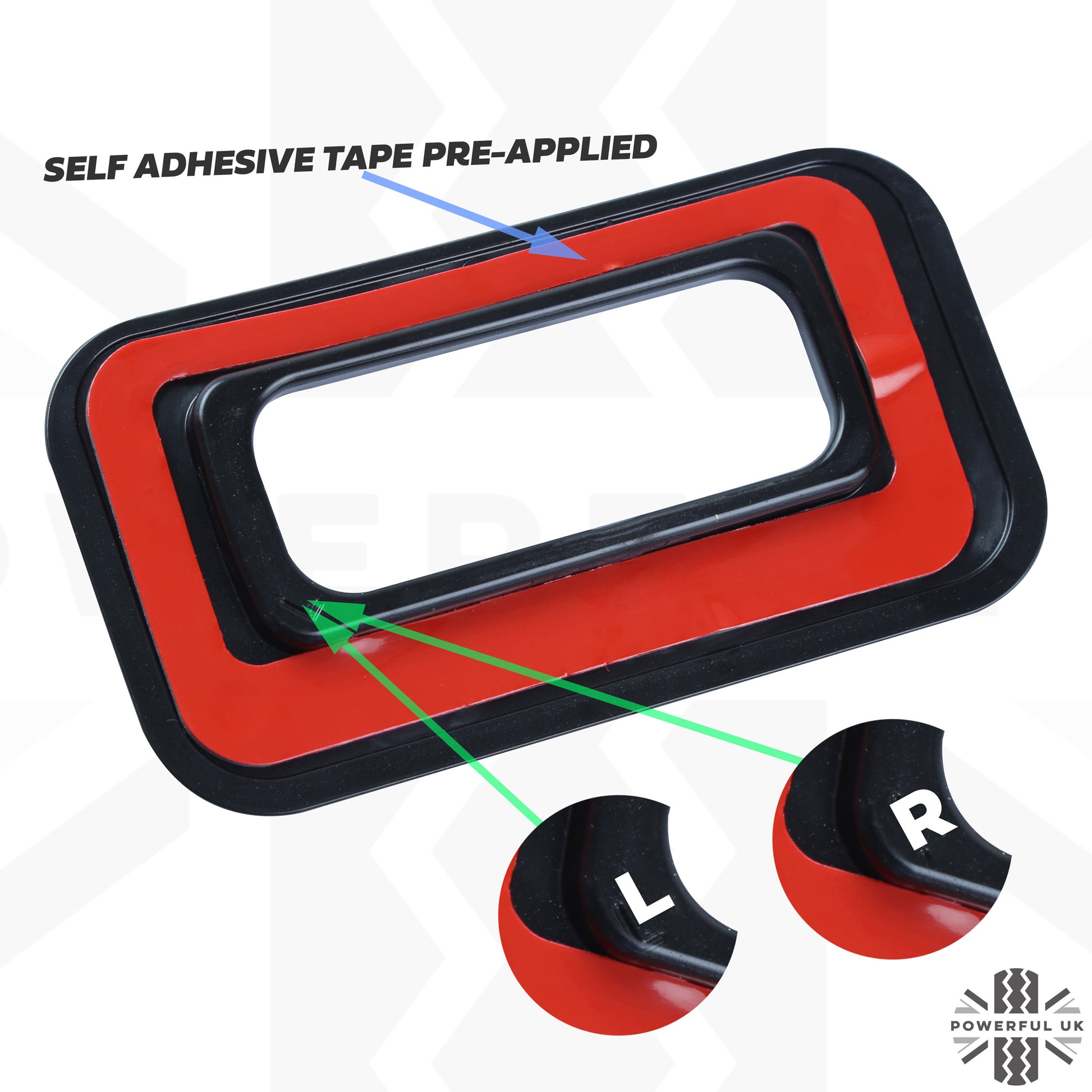 The surrounds are pre-fitted with automotive grade self adhesive tape and supplied with an alcohol based surface preparation wipe to ensure maximum adhesion.