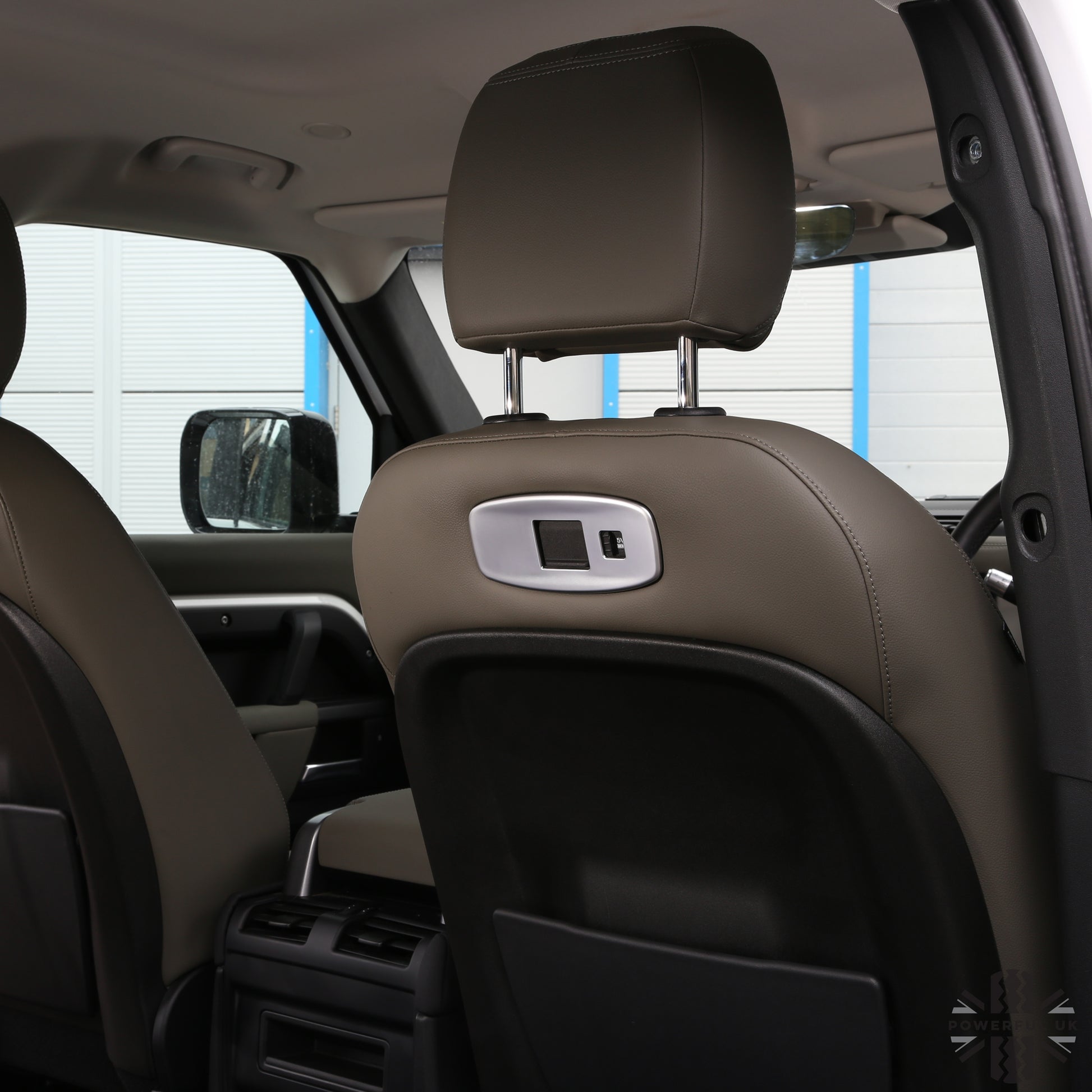 These covers fit over the panels which house the USB port on the seat-backs of the driver and passenger seats.