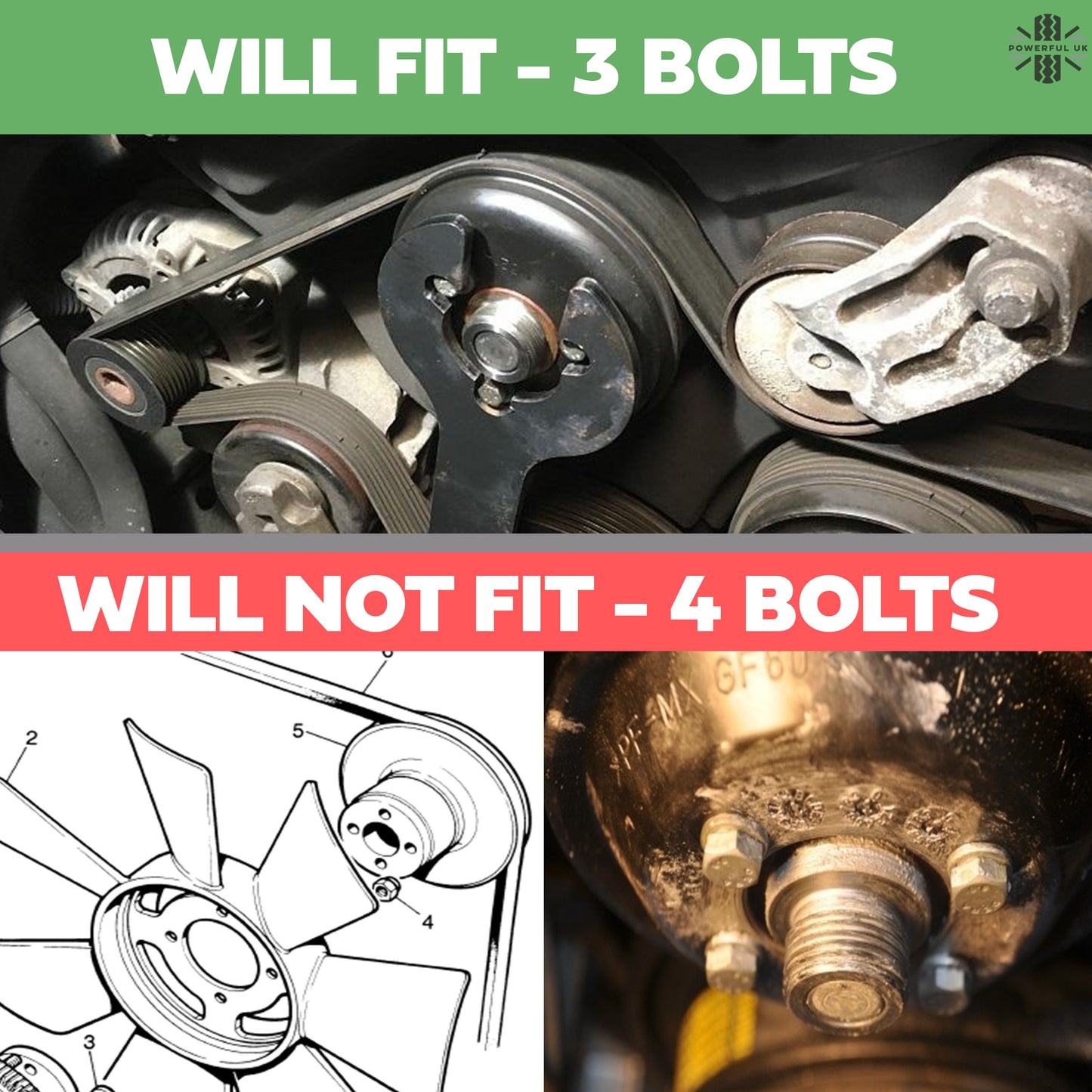 The V8 engine models only have 3 bolts to undo which this tool kit suits whereas the BMW M51 engines have 4 bolts to undo.