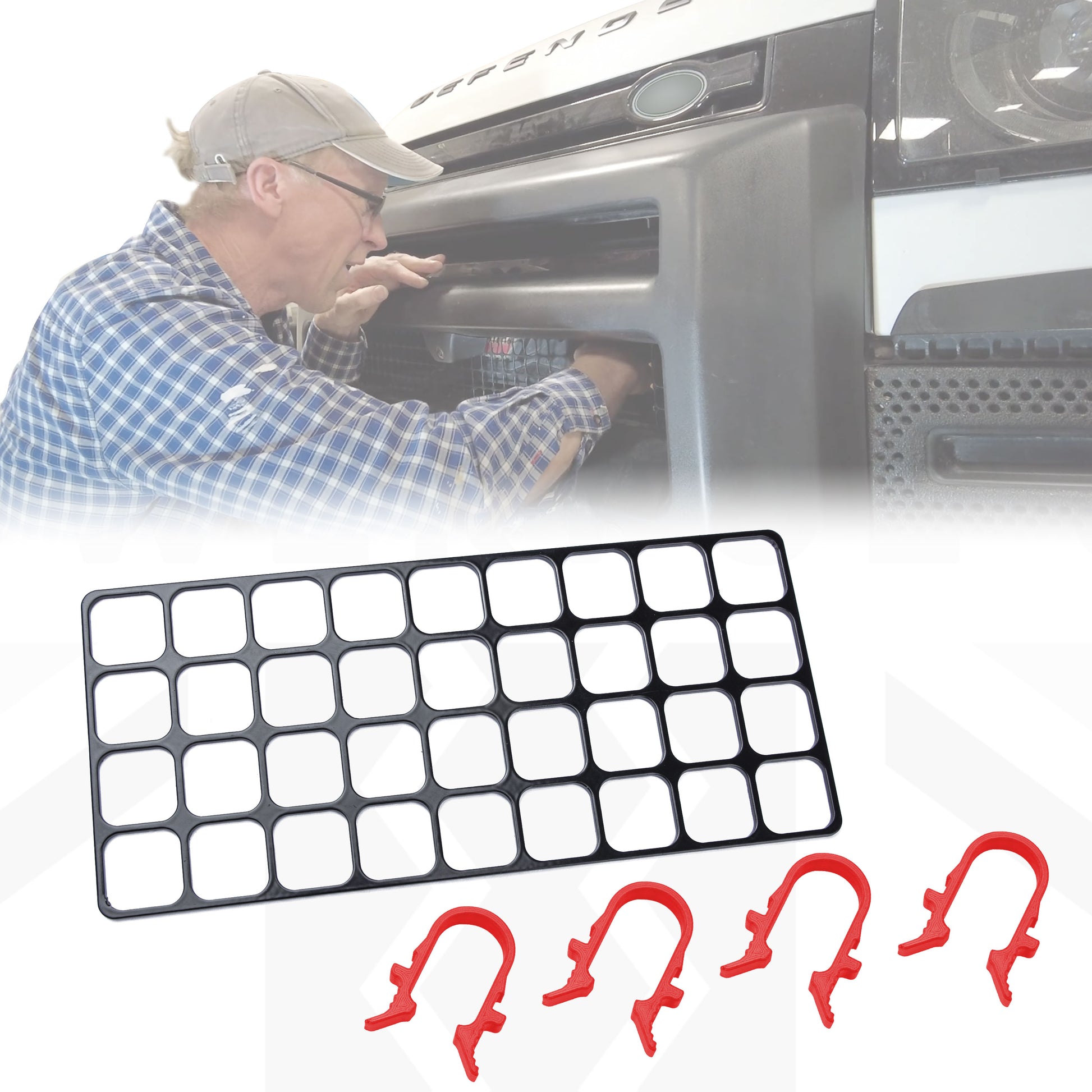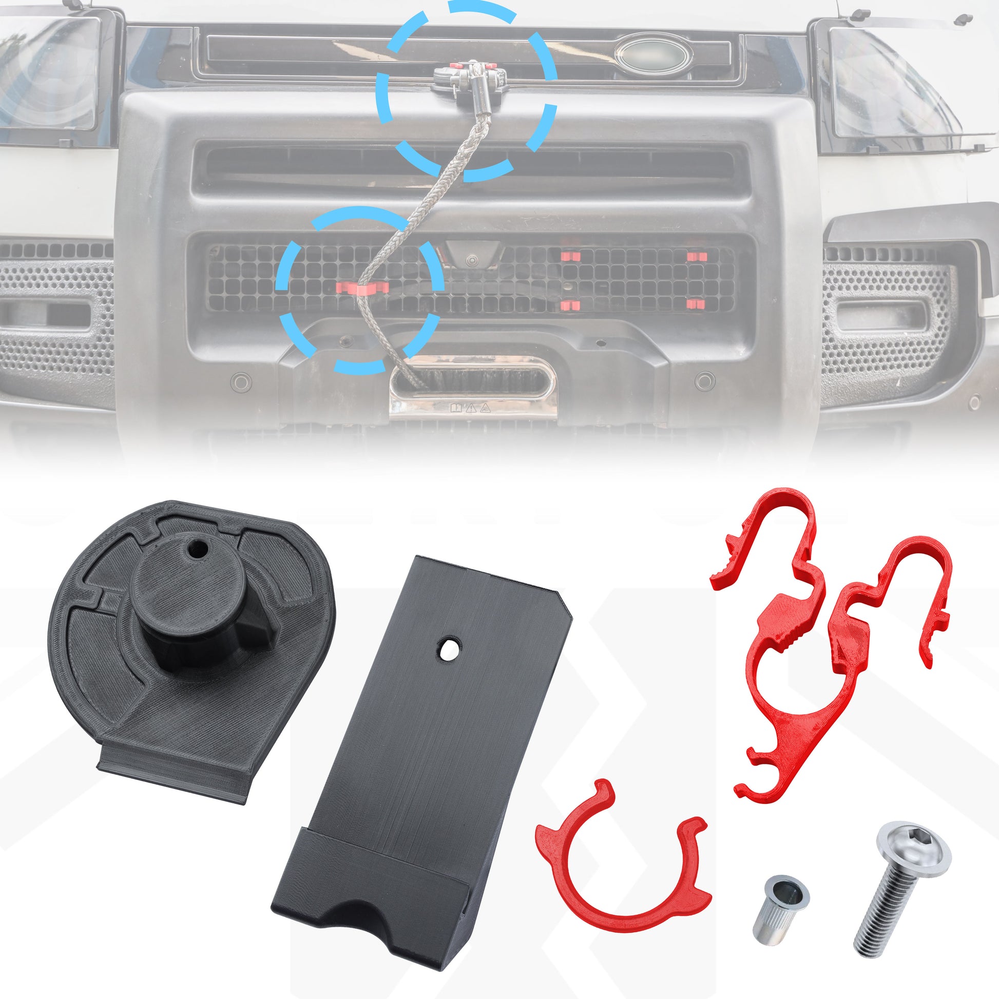 Winch Access Panel & Hook Holder Bundle for Land Rover Defender L663 - with Red clips