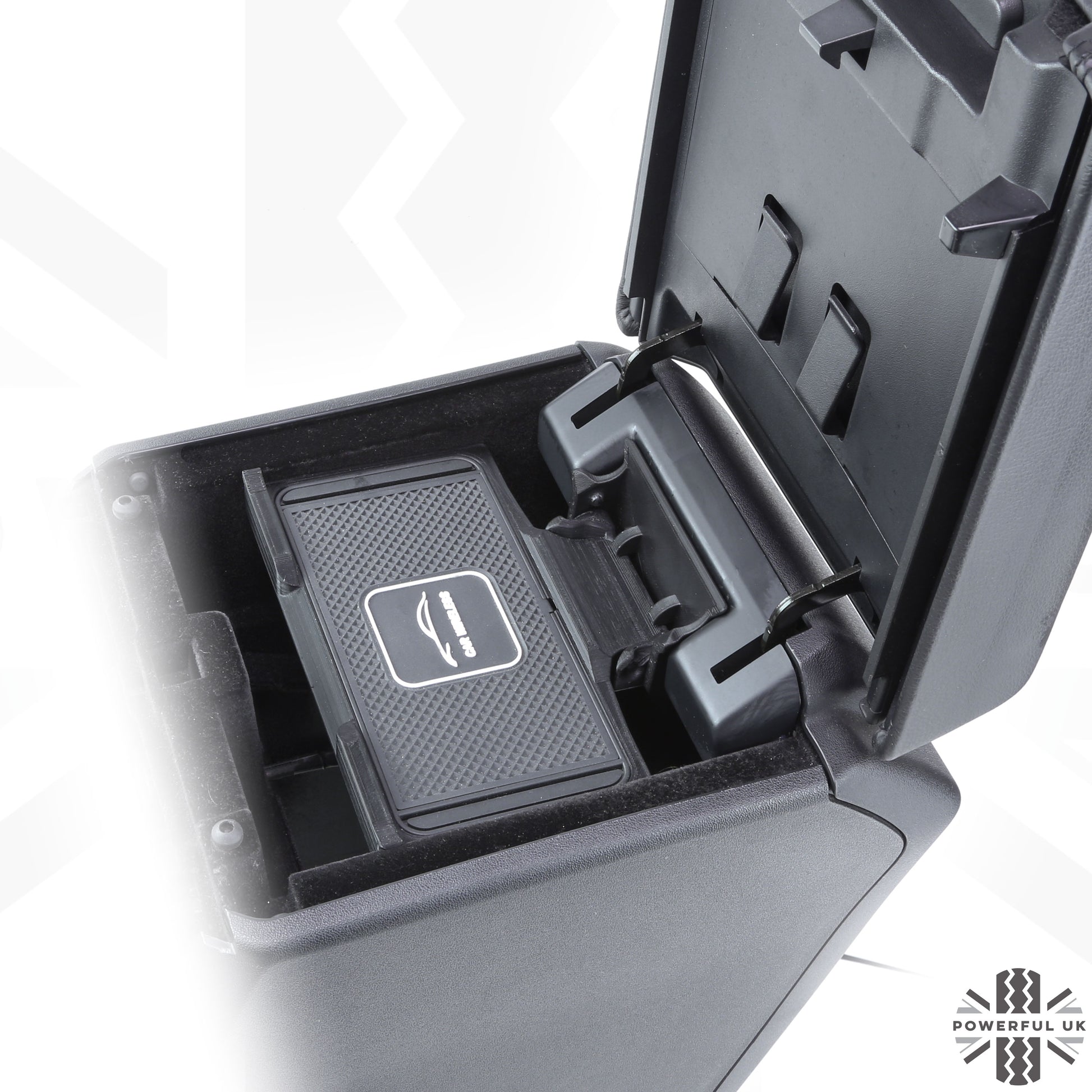This tray fits neatly into the cubby box in the centre console and gives you wireless charging capability for Qi enabled devices (phones, earphones etc).